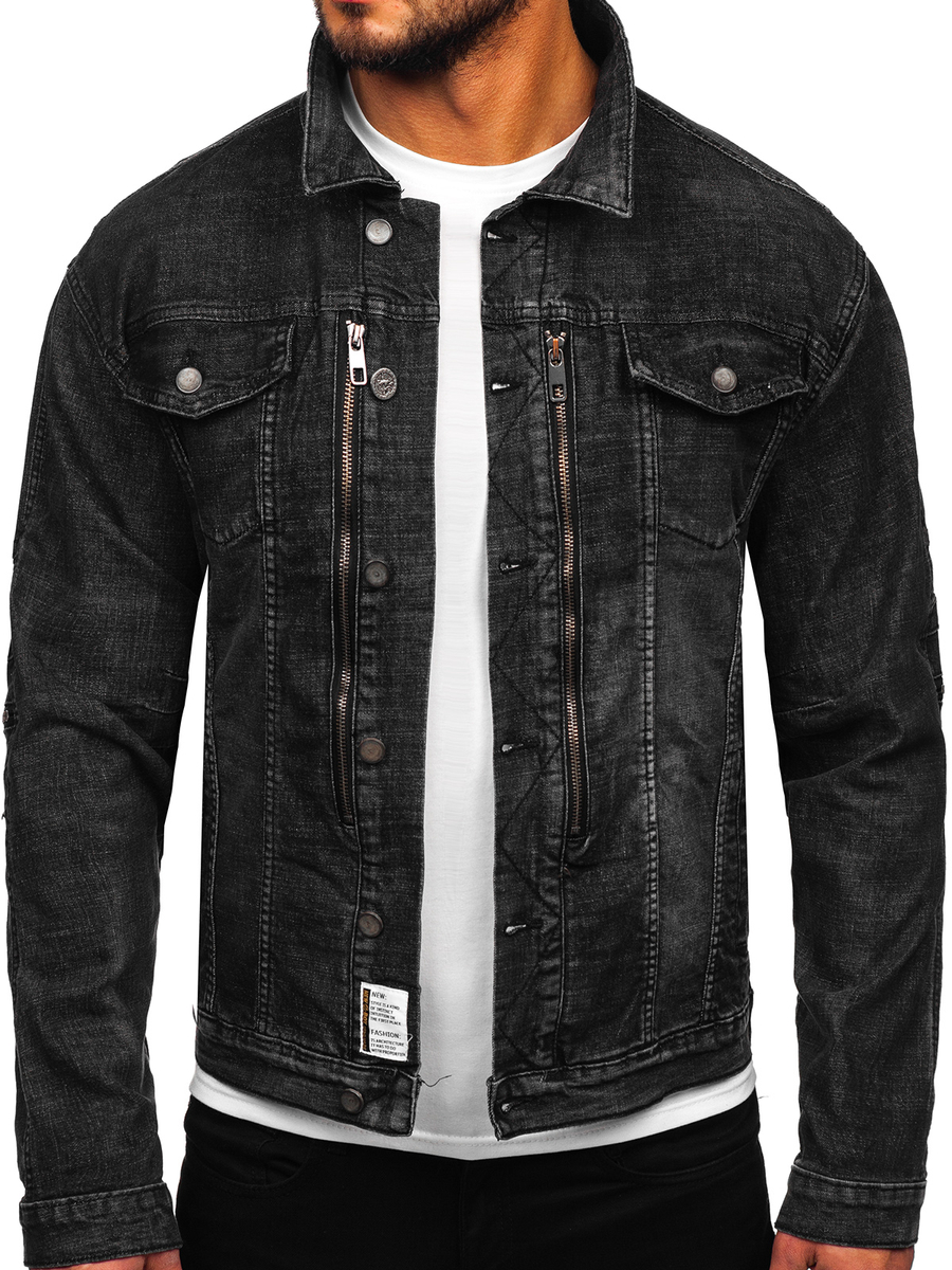 Muška crna traper jakna Bolf MJ508N jesenski je must-have u svakom muškom ormaru. Jakna se kopča na gumbe i ima ovratnik. Moderno zasjenjenje i ukrasni patentni zatvarači daju mu iznimno moderan i bezvremenski karakter. Dodatni, praktičan ukras su dva džepa s gumbom i dva bočna džepa bez kopčanja. Omiljeni našim kupcima, jednostavan kroj jakne lijepo pristaje uz figuru. Rukavi se zakopčavaju gumbom. Jakna je fantastična za duge večernje šetnje, sastanke s prijateljima ili spontana putovanja. Traper jakna savršena je kombinacija s trenirkom i joggericama .