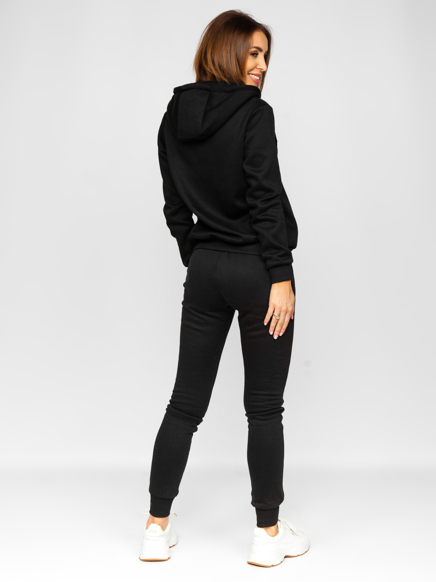 Ženska crna dvodijelna trenirka Bolf 0003 jedinstvena je ponuda za ljubiteljice sportskog izgleda. Set uključuje duksericu i hlače. Dukser se kopča patentnim zatvaračem, ima podesivu kapuljaču i dva džepa. Trenirke su podesive u struku s jakim remenom i vezicom. Imaju dva džepa sprijeda, a nogavice su završene remenom, što osigurava da hlače savršeno pristaju uz figuru. Jednostavan, uklopljen kroj daje im sportski izgled. Proizvod je izrađen od nježne tkanine ugodne na dodir. Sam set trenirke stvara idealnu, sportsku odjeću, savršenu ne samo za trening, već i za ležeran dan kod kuće ili izlet u planine. Možete ga upariti s laganom prijelaznom jaknom , sportskom ili prslukom .