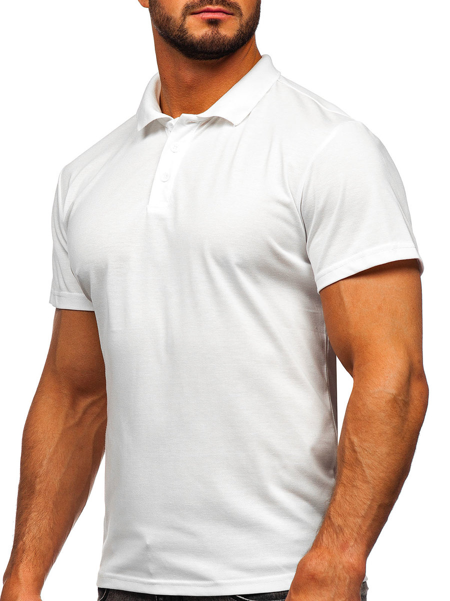 Bijela muška polo majica Bolf 8T80 je klasik u najnježnijem izdanju. Glatka polo majica dostupna je u velikom i zanimljivom rasponu boja, zahvaljujući kojima ćete ne samo odabrati svoje omiljene boje, već ćete ih i uklopiti u svaki stajling. Majica ima ovratnik koji se kopča na tri gumba. Riječ je o proizvodu izrađenom od najkvalitetnijih materijala koji će vam pružiti udobnost u svim okolnostima. Polo majica savršena je ne samo za svečane prilike, već će biti savršena i za svakodnevni styling. Savršeno će izgledati u kombinaciji s traper hlačama i kožnom jaknom.