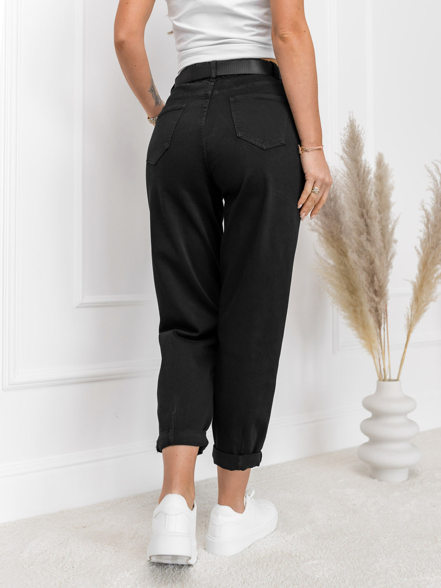 Ženske crne traper hlače visokog struka i remenom sa pederušom Bolf LA688 moderne su boyfriend traperice. Traper hlače visokog struka s patentnim zatvaračem i gumbima. Set uključuje moderan i praktičan remen s pederušom. Hlače imaju dva džepa sprijeda, dva straga i mali džep sprijeda. Traper hlače univerzalna su baza za izradu svakodnevnih stilizacija. Stvorite ležerni stil kombinirajući ih s trenirkom . Kombinirajte ih s džemperom i kaputom i uživat ćete u izgledu koji će biti savršen za randevu!