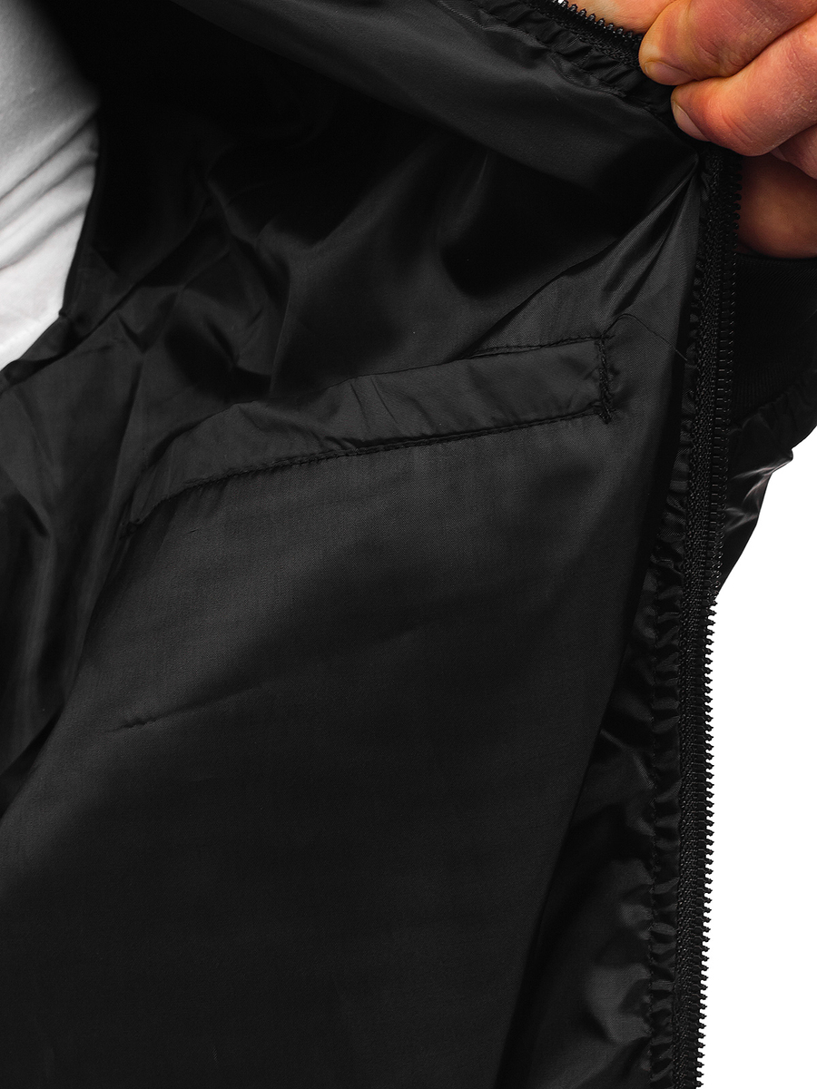 Muška crna prijelazna bomber jakna Bolf 5M708 klasik je u jesenskom i proljetnom razdoblju. U modernim i univerzalnim bojama. Jakna se kopča patentnim zatvaračem i ovratnikom s remenom. Rukavi i donji dio su završeni remenom, zahvaljujući kojem jakna savršeno pristaje uz tijelo. Jakna ima praktične džepove. Dva vanjska džepa sa patentnim zatvaračima, džep na lijevom rukavu sa patentnim zatvaračem i unutarnji džep bez kopčanja. Bomber jakna će biti savršena i za svakodnevne i za sportske stilizacije. Tražite li stiliyaciju za trening? Napravite svoj sportski izgled uz majicu , duks i hlače .