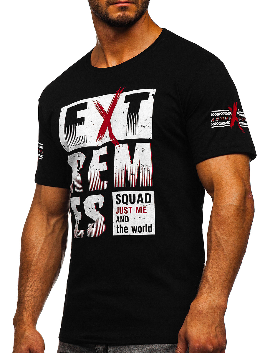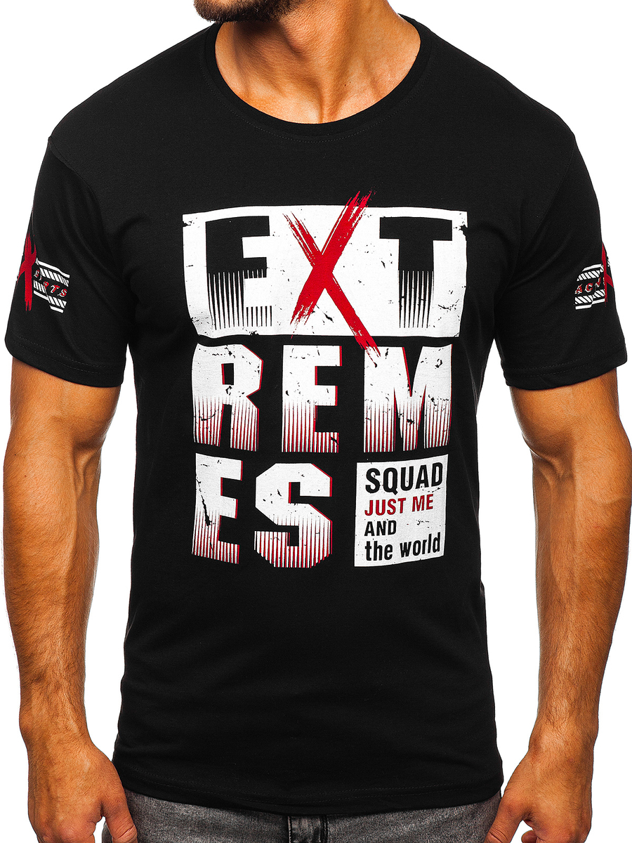 Crna muška majica s printom Bolf 14312 univerzalni je element muškog stylinga u iznimno modernom izdanju. Majica ravnog kroja s okruglim izrezom pristaje svakoj figuri. Zahvaljujući originalnom printu s prednje strane, majica će svakom stajlingu dodati originalan izgled. Izrađena je od 100% pamuka. Zahvaljujući njegovoj svestranosti, s njim možete stvoriti mnoge moderne stilove. Savršeno za sportsku i svakodnevnu odjeću. Kombinirajte majicu s trenirkom i prslukom za najotmjeniji, sportski izgled.