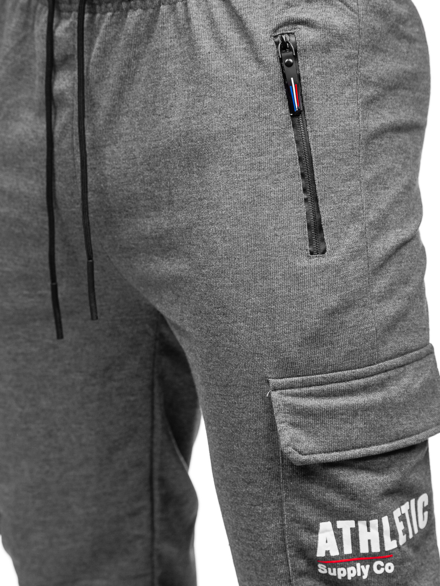 Muške antracit cargo hlače Bolf JX5061 prijedlog su za hladnije dane i večeri. Zahvaljujući prilagodbi u struku s jakim remenom i konopom, savršeno pristaju uz tijelo. Vrlo praktičan element su četiri bočna džepa, dva na patent zatvarač i dva s preklopom s ukrasnim natpisom. Nogavice su završene elastičnom trakom, zahvaljujući kojem dobivamo klasični kroj cargo hlača. Ulični stil hlača omogućuje vam da ih koristite svaki dan, za gotovo svaku priliku. Zahvaljujući vrlo dobroj kvaliteti materijala, u njima ćete se osjećati ugodno. Kombinirajte ih s majicom , trenirkom i kožnom jaknom !