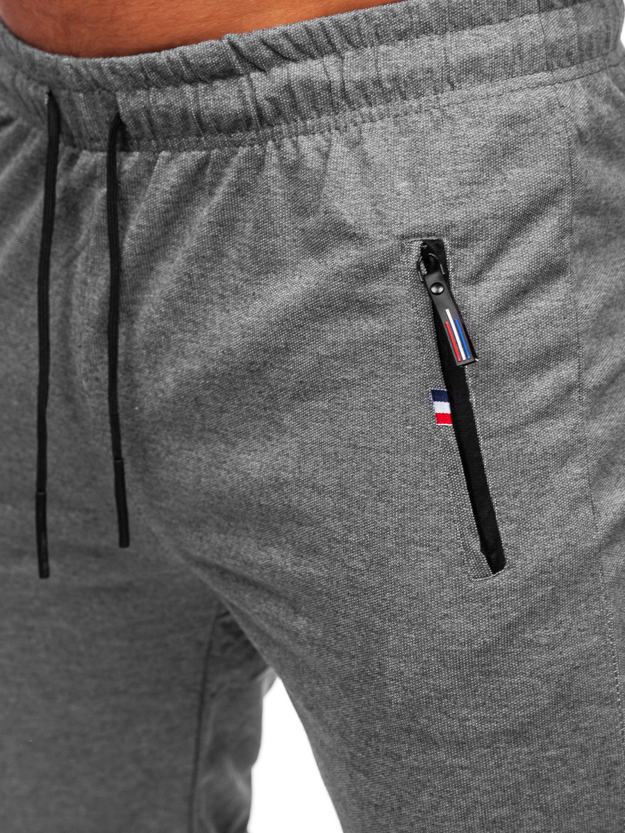 Antracit muške trenirke Bolf JX5001 klasik su u kreiranju sportske odjeće. Hlače su dostupne u tri prigušene boje. Zahvaljujući prilagodbi u struku s jakim remenom i špagom, savršeno pristaju uz tijelo. Hlače imaju dva bočna džepa sa patentnim zatvaračima. Izrađene od najkvalitetnijih materijala, što trenirke čini vrlo udobnim i ugodnim na dodir. Uspješno ih možete obući kada idete u teretanu ili trenirate na otvorenom. Savršeni su za spontana putovanja izvan grada. Napravite klasičnu, sportsku odjeću s majicom i trenirkom . Za urbani izgled, uparite trenirku s dugim rukavima i kožnom jaknom .
