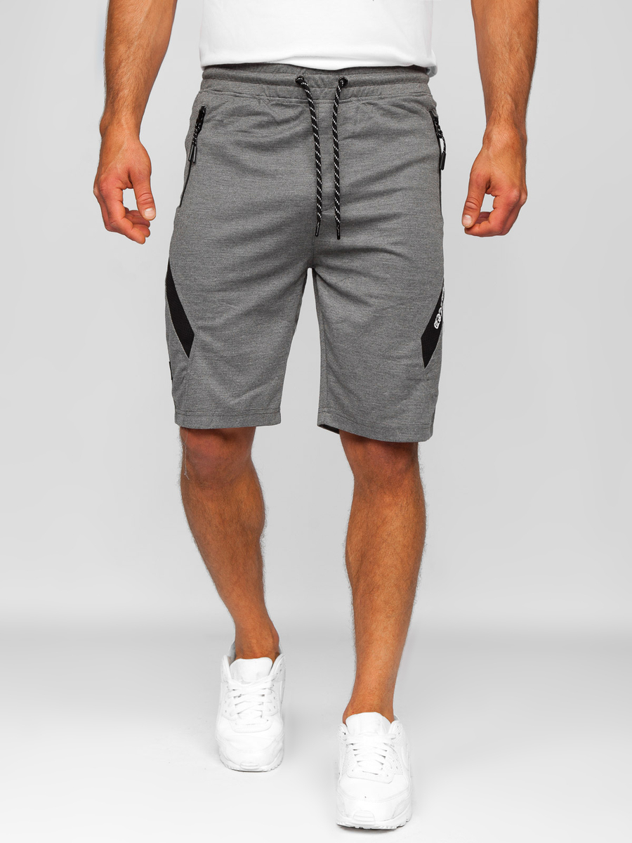 Sportske sivo-crne trenirke Bolf. Savršeni za trening, dobro će raditi u teretani i na otvorenom. Sivo-crne kratke hlačice su podesive u struku s remenom, imaju 2 džepa s patentnim zatvaračem, ukrasne umetke na nogavicama. Kratke hlačice imaju izražajan print na nogavici. Najbolje je nositi uz majicu kratkih rukava i sportske cipele.