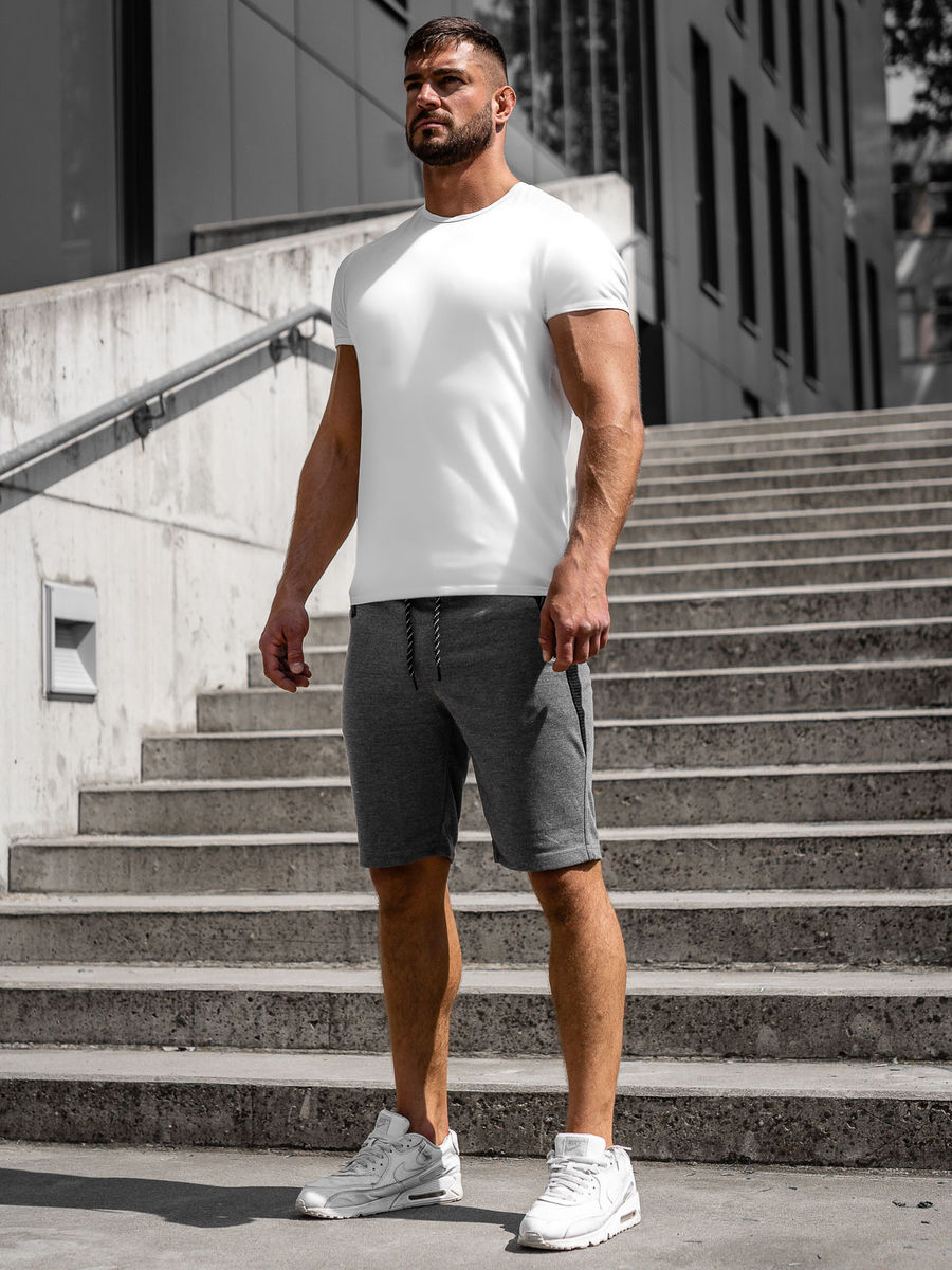 Savršene za svakodnevnu upotrebu, sportske kratke hlače Bolf u sivo-crnoj boji. Savršene su za trening, lagane su i udobne. Sivo-crne kratke hlačice su podesive u struku s remenom, imaju 2 džepa s patentnim zatvaračem i umetke od tkanine na džepovima. Najbolje je nositi uz majicu kratkih rukava i sportske cipele.