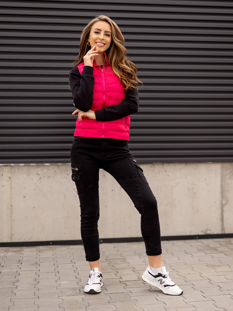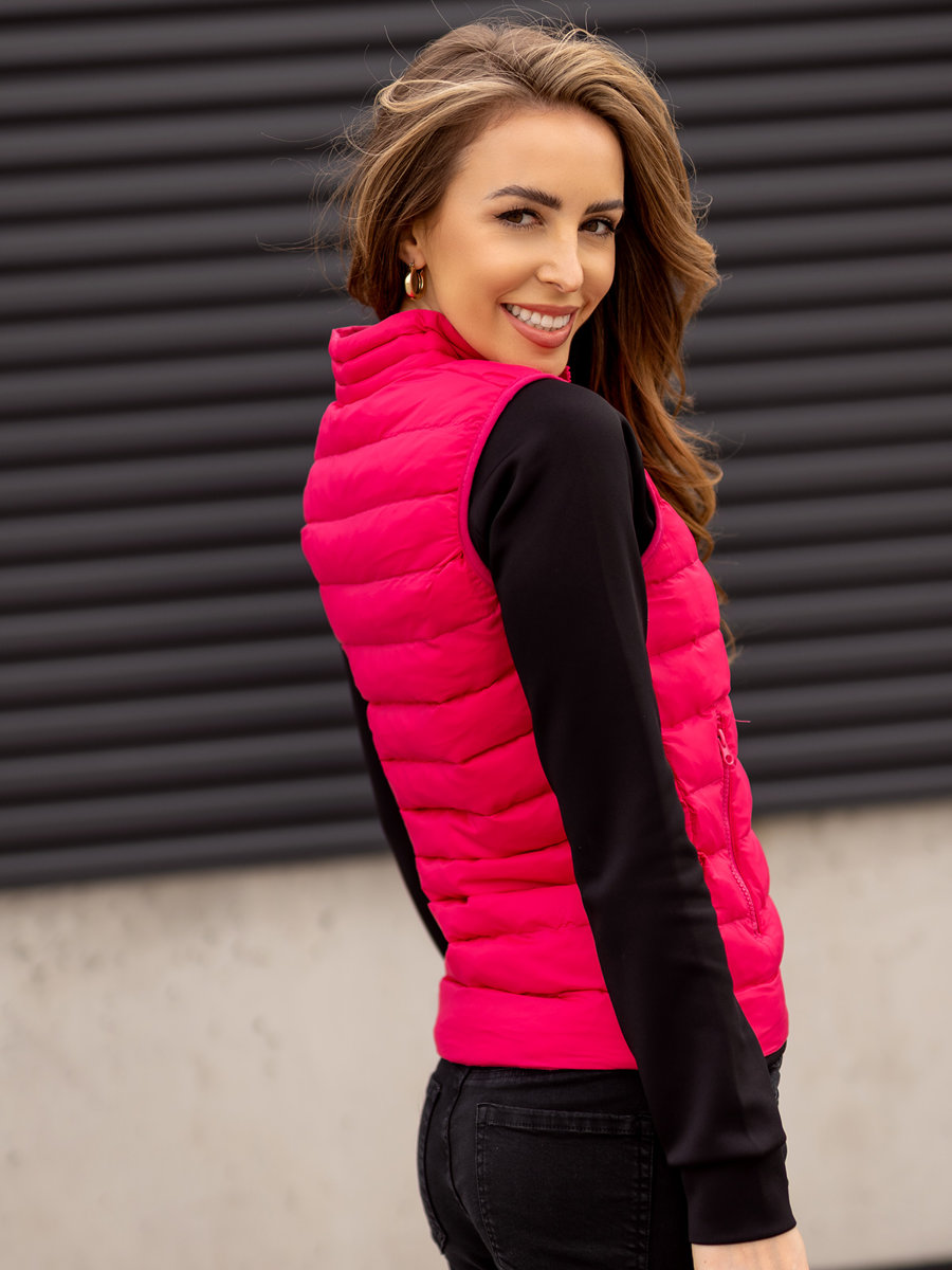 Ženski ružičasti prošiveni prsluk Bolf 23077 savršen je za kreiranje sportskih stilizacija. Ovaj prošiveni prsluk klasičnog kroja bit će izvrsna alternativa jakni u jesenskoj sezoni, pružajući zaštitu od hladnoće i vjetra. Zakopčava se patentnim zatvaračem i ima stojeći ovratnik. Dva vanjska džepa s patentnim zatvaračima daju mu praktičan karakter. Izrađen je od 100% najlona pa ćete se u njemu osjećati izuzetno ugodno. Izgledat će sjajno u kombinaciji sa trenirkama stvarajući sportski, opušteni outfit. Traperice će također savršeno pristajati. Možete ga nositi na trenirku ili majicu !