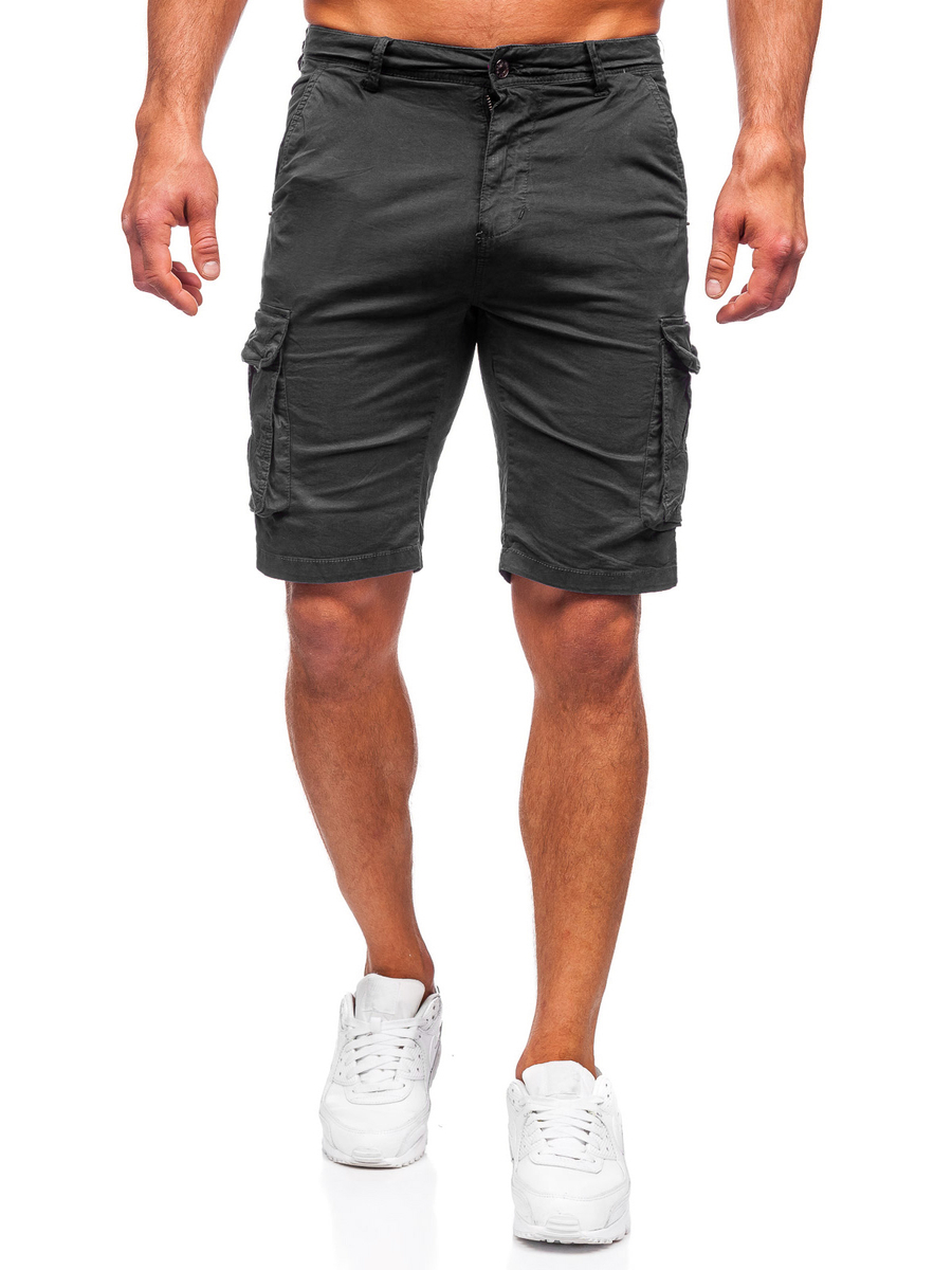Crne šorc hlače cargo muške Bolf XX160086 je proizvod koji pruža udobnost i udobnost tijekom vrućih ljetnih dana. Model ima nekoliko zanimljivih verzija boja. Kratke hlače imaju klasičan patent zatvarač i gumb. Kratke hlače imaju dva vanjska džepa bez kopčanja, dva stražnja džepa s preklopom koji se kopčaju na kopčanje i bočne džepove s preklopom koji se kopčaju na druker. Najkvalitetniji materijal omogućit će vam da se osjećate ugodno u svakoj situaciji. Savršeno za satove teretane ili trčanje. Kreirajte svoju urbanu odjeću s majicom i bomber jaknom .