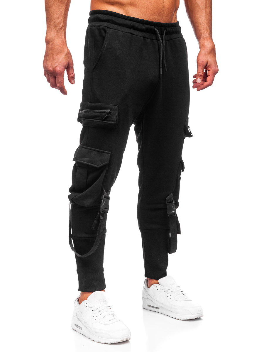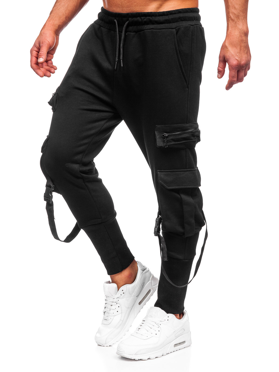 Muške crne cargo hlače Bolf 6582 stvorene su za ljubitelje urbanih outfita. Cargo hlače su podesive u struku s jakim remenom i vezicom, zahvaljujući čemu savršeno pristaju uz tijelo. Izrađene su od 70% pamuka i 30% poliestera, što ih čini iznimno udobnim i ugodnim na dodir. Funkcionalni i praktični elementi su džepovi: dva vanjska džepa bez kopčanja, dva mala bočna džepa s patentnim zatvaračima i dva bočna džepa s preklopom. Dekorativni kopči na bočnim džepovima daju im jedinstven izgled. Nogavice su dovršene remenima koji savršeno pristaju uz tijelo. Cargo hlače savršeno će se uskladiti s trenirkom ili majicom .