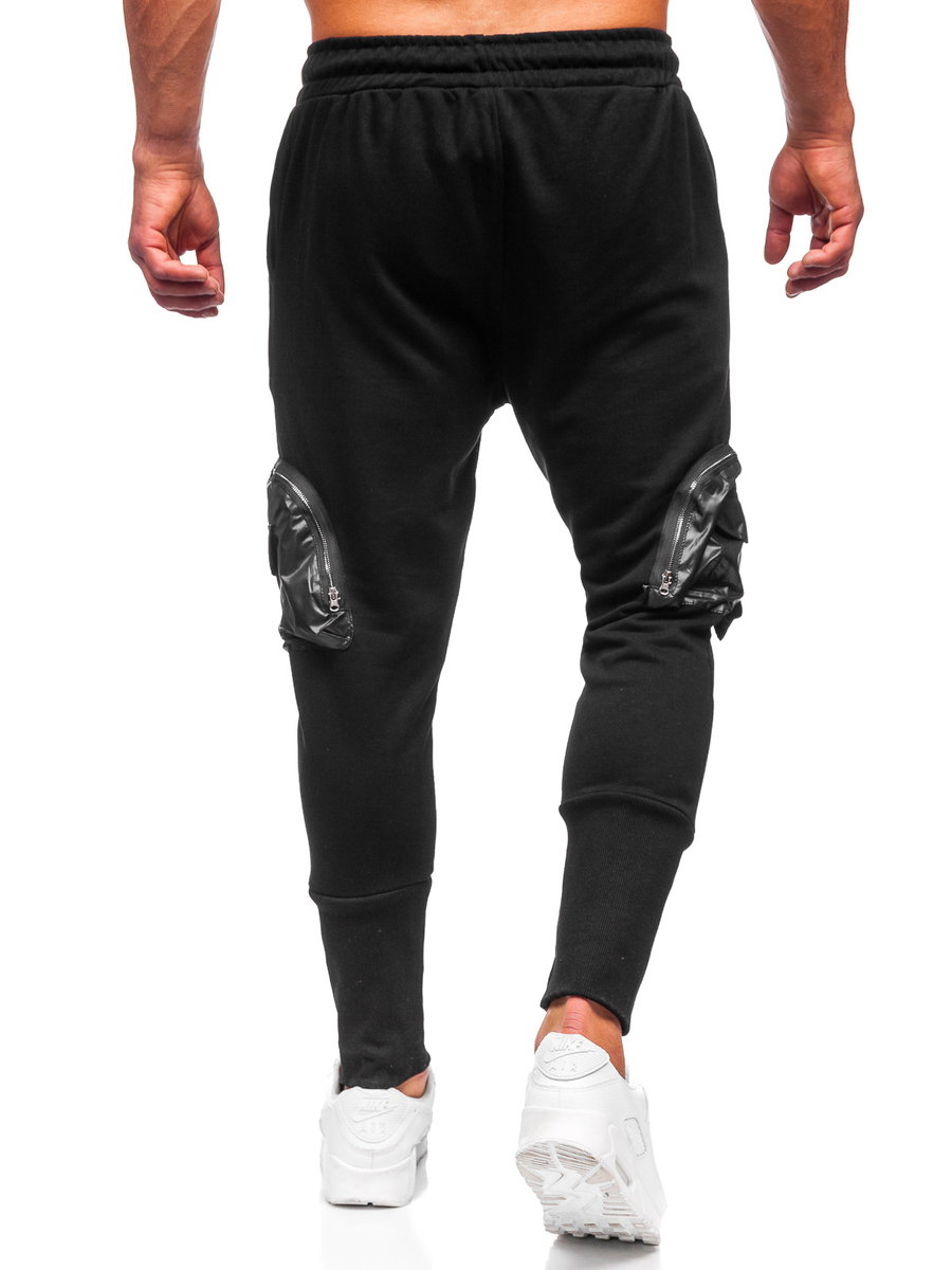 Muške crne cargo hlače Bolf 6583 stvorene su za ljubitelje urbanih outfita. Cargo hlače su podesive u struku s jakim remenom i vezicom, zahvaljujući čemu savršeno pristaju uz tijelo. Funkcionalni i praktični elementi su džepovi: dva vanjska džepa bez kopčanja, dva mala bočna džepa s preklopom i dva bočna džepa s patentnim zatvaračima. Ukrasni kopči na bočnim džepovima i otisak na lijevoj nozi daju im jedinstven izgled. osim toga, noge su dovršene remenima koji savršeno odgovaraju tijelu. Cargo hlače savršeno će se uskladiti s trenirkom ili majicom .