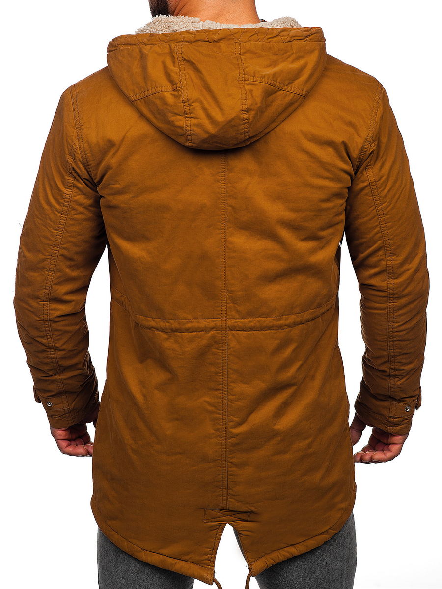 Muška boje devine dlake zimska jakna Bolf EX838 je stilski must-have za muškarce u jesensko-zimskoj sezoni. Parka je impresivna i odlično stoji na muškoj figuri. Nije samo moderna, već i nevjerojatno praktična i topla. Jakna se kopča patentnim zatvaračem i drukerima. Ima izoliranu, podesivu kapuljaču povezanu ovratnikom. Kapuljača je obrubljena toplim krznom, koje vas grije i u najhladnijim danima. S unutarnje strane, jakna je podesiva uzicu u struku, tako da je možete prilagoditi po želji kako bi vam više-manje pristajala. Ima dva vanjska džepa s gumbima. Rukavi su s unutarnje strane završeni remenom i podesivi s vanjske strane drukerima. Stražnji dio jakne je izdužen, zbog čega se osjeća udobnije i u hladnim zimskim danima.
