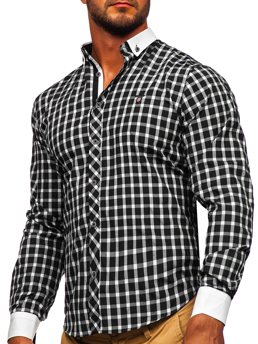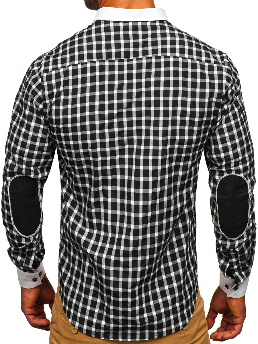 Crna muška elegantna karirana košulja dugih rukava Bolf 5737-1, na kopčanje, ima kragnu "button down". Ima podesive, jednostruke manšete s gumbima. Slim fit model sa zaobljenim donjim dijelom majice, koji vole naši kupci, savršeno pristaje uz tijelo. Dodatni element koji košulji daje izvanredan izgled su zakrpe na laktovima i logo izvezen na prsima. Proizvod je dostupan u mnogim varijantama boja. Košulja će biti savršena kako za svakodnevnu upotrebu tako i za svečanije prilike. Uz chino hlače i jaknudobit ćete klasičan, elegantan izgled. Za casual outfit nosite traperice i kožnu jaknu!
