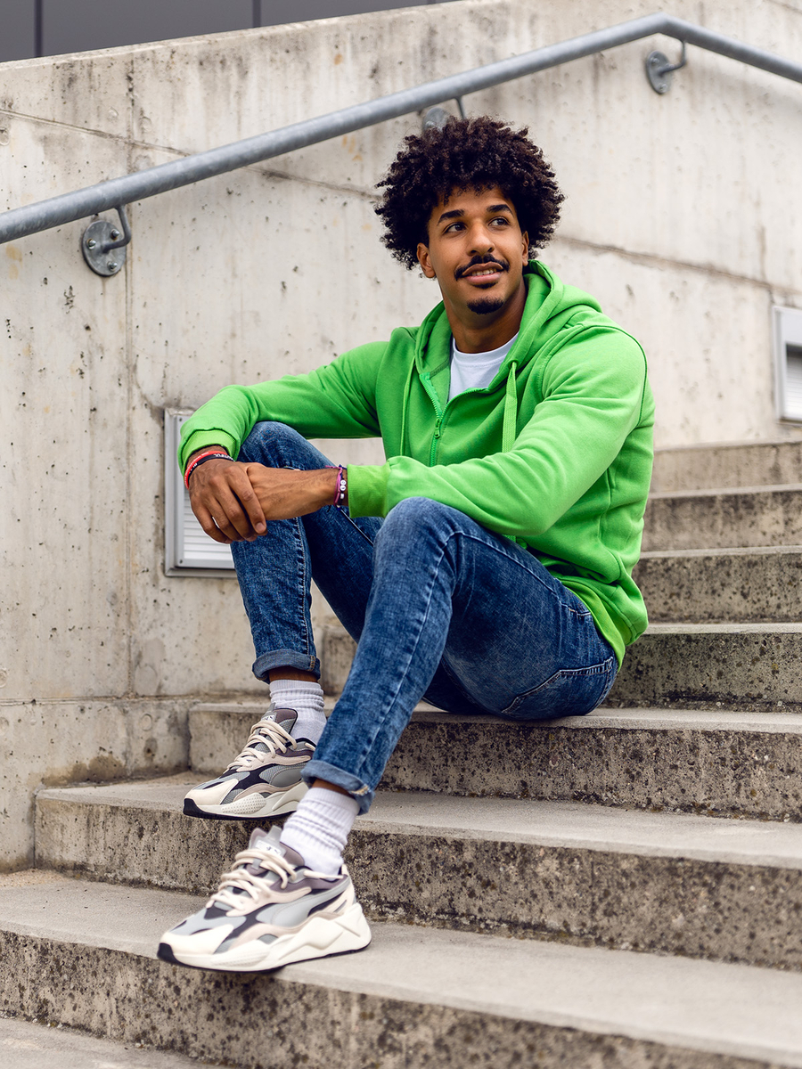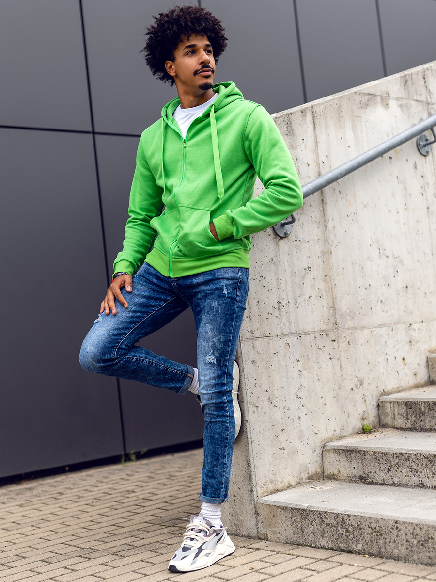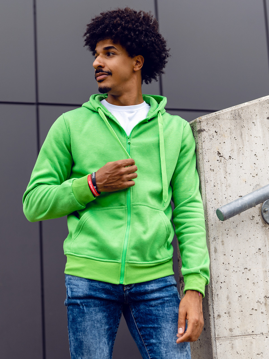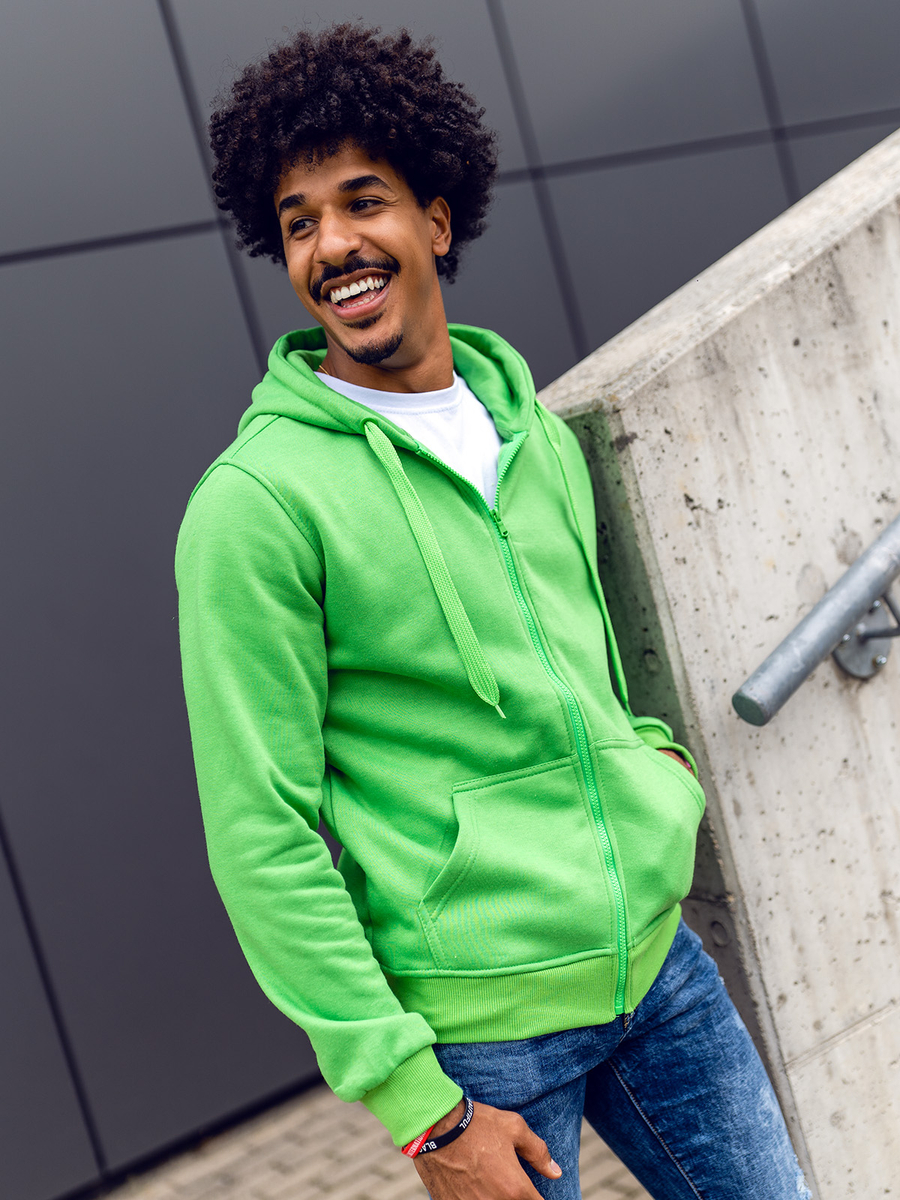Muška svijetlozelena dukserica s kapuljačom Bolf 2008A kopča se patentnim zatvaračem. Dukserica klasičnog kroja od mekane tkanine za trenirke ugodnog na dodir. Proizvod karakterizira mnoštvo izražajnih boja u kojima je dostupan. Ima jednobojnu podesivu kapuljaču i dva bočna džepa. Donji dio trenirke i rukavi završeni su jakim rubovima. Sweatshirt preporučamo prvenstveno ljubiteljima minimalizma i udobnosti u modi. Dobro je sašivena i udobna. Must have u modnoj muškoj garderobi. Jednostavan, klasičan kroj u zanimljivim bojama čini ovaj model dukserice savršenom kulminacijom mnogih svakodnevnih, uličnih i sportskih stilizacija. Glatki muški sweatshirt na otkopčavanje prijedlog je koji vrijedi imati u svom ormaru ne u jednoj, pa čak ni u višebojnoj varijanti. Od klasične crne, preko tamnoplave i crvene, do nešto ekstravagantnijih u bojama žute, narančaste ili ružičaste. Trenirka će funkcionirati u mnogim okolnostima u bilo koje doba godine.