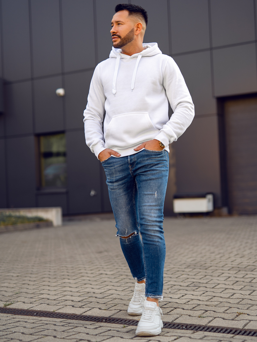 Muška bijela majica s kapuljačom Bolf 2009A pulover. Ima podesivu kapuljaču i praktičan klokan džep sprijeda. Jednostavan klasični kroj i završna obrada daju mu sportski karakter. U pojasu i na kraju rukava ima rube iste boje. Izrađena je od mekane, glatke tkanine dukserice ujednačene boje. Ovaj model odlikuju bogate boje, može se pronaći u više od dvadeset varijanti boja, zahvaljujući kojima se lako uklapa u mnoge odjevne kombinacije. Glatka, klasična kapuljača koja se ne može odvojiti radit će u bilo koje doba godine i u gotovo svim okolnostima. Putovanje s prijateljima u planine ili na more? Cjelodnevna kupovina? Sastanak nakon posla? Čak i za spontani spoj bit će prikladno. Proizvod je savršen za svakodnevno nošenje, mora se imati u svakoj elegantnoj muškoj garderobi. Modne boje dodat će karakter mnogim casual, uličnim i sportskim stilizacijama. Savršeno za traperice , cargo hlače ili jogger hlače . Proizvod će se također savršeno uklopiti u tipičnu sportsku odjeću, može se kombinirati s trenirkama i prijelaznom jaknom . Bit će korisno za treninge, kako na otvorenom, tako i u teretani ili sportskoj dvorani. Ovaj model često odabiraju kupci. On ima ogromnu skupinu obožavatelja među stalnim korisnicima Bolfa, kao i našim influencerim i zvijezdama Instagrama. Privlači izvrsnom izradom i dobrom cijenom u odnosu na konkurenciju. Dukserica također je napravljena u ženskoj verziji, što također ruši rekorde popularnosti.