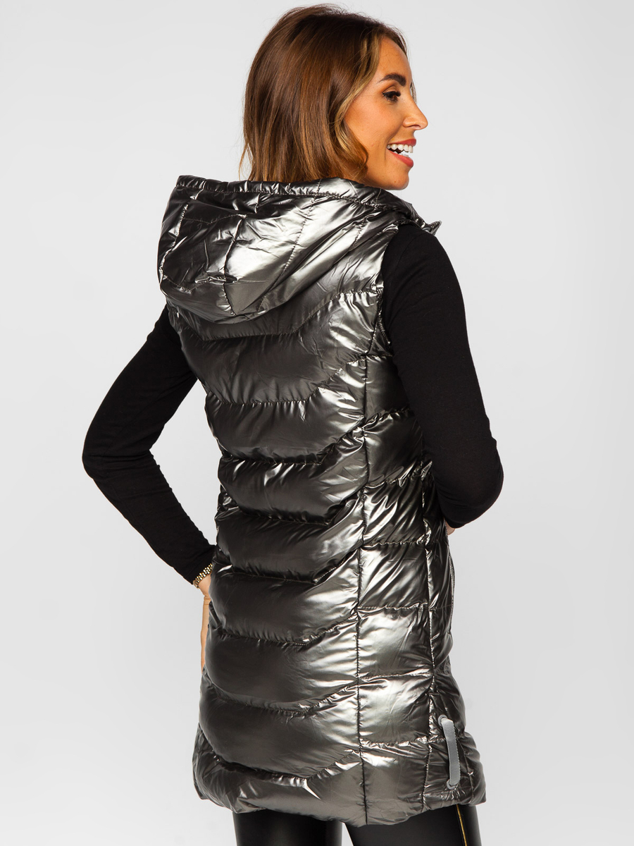 Mišljenja korisnika o Srebrni ženski dugi prošiveni prsluk s kapuljačom Bolf 7043