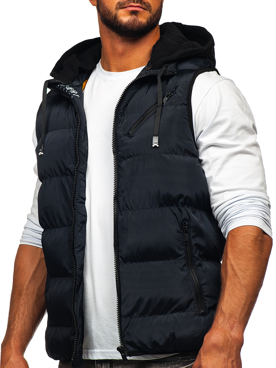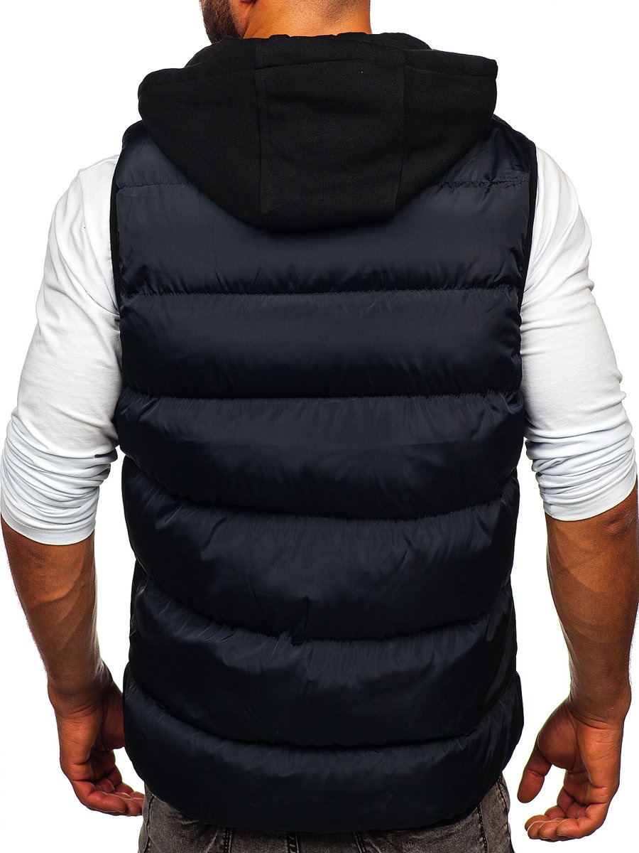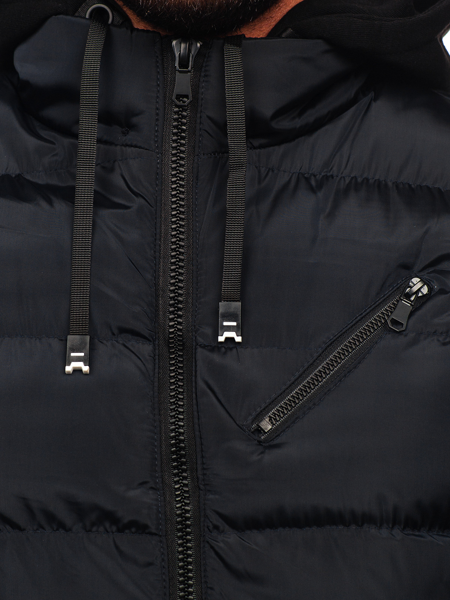 Mišljenja korisnika o Tamnoplavi debeli prošiveni prsluk s kapuljačom Bolf 7126