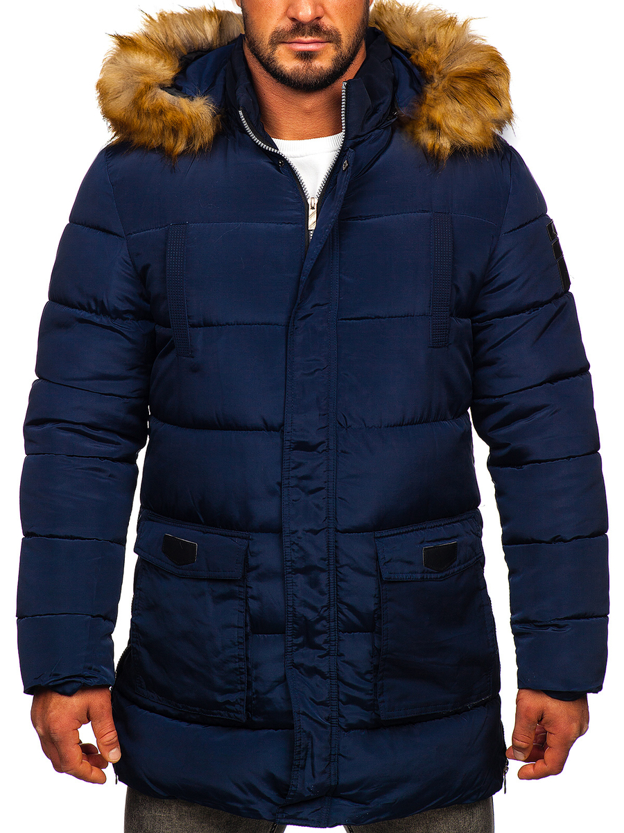 Muška tamnoplava prošivena zimska jakna Bolf 5M50 savršen je izbor za zimsku sezonu. Kopča se na klasičan način, patentnim zatvaračem i kopčama. Ima stojeći ovratnik i podesivu, odvojivu kapuljaču zahvaljujući kojoj ćete se zaštititi od vjetra i kiše. Osim toga, kapuljača ima moderno, odvojivo krzno. Ukrasna aplikacija na rukavu i patentni zatvarači na dnu jakne daju joj jedinstven, osebujan karakter. Zbog pripijenog kroja svatko u njemu izgleda iznimno dobro. Jakna ima praktične bočne džepove koji se kopčaju pritiskačem i unutarnji džep bez kopče. Izrađen je od visokokvalitetnih materijala, što ga čini vrlo udobnim i ugodnim na dodir. Stvorit će savršenu kombinaciju s trapericama, joggericama i chinos hlačama.