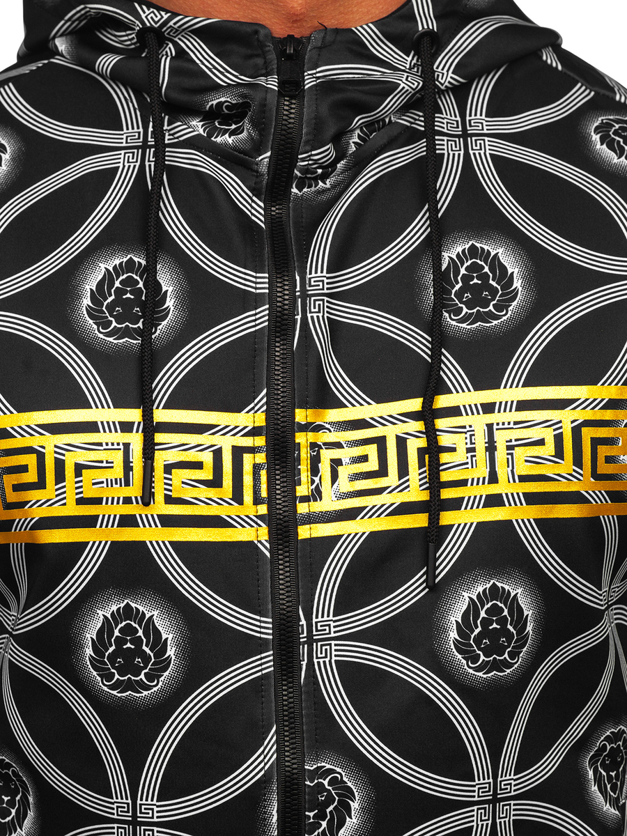 Muška crna majica s punim patentnim zatvaračem Bolf 27B8123 izvanvremenski je klasik u svakodnevnom stilu. Sweatshirt klasičnog kroja, s podesivom kapuljačom, savršen za ljubitelje sportskog stila. Dizajnerski print daje jedinstven, moderan karakter. Donji dio i rukavi trenirke obrađeni su remenom koji pruža toplinu i zaštitu od vjetra u hladnijim danima. Majica ima dva bočna džepa bez kopčanja. Izrađena je od vrlo ugodnog materijala koji će osigurati udobnost i tijekom najzahtjevnijih treninga. Tražite sportsku odjeću? Kombinirajte trenirku s hlačama, majicom i vestom!