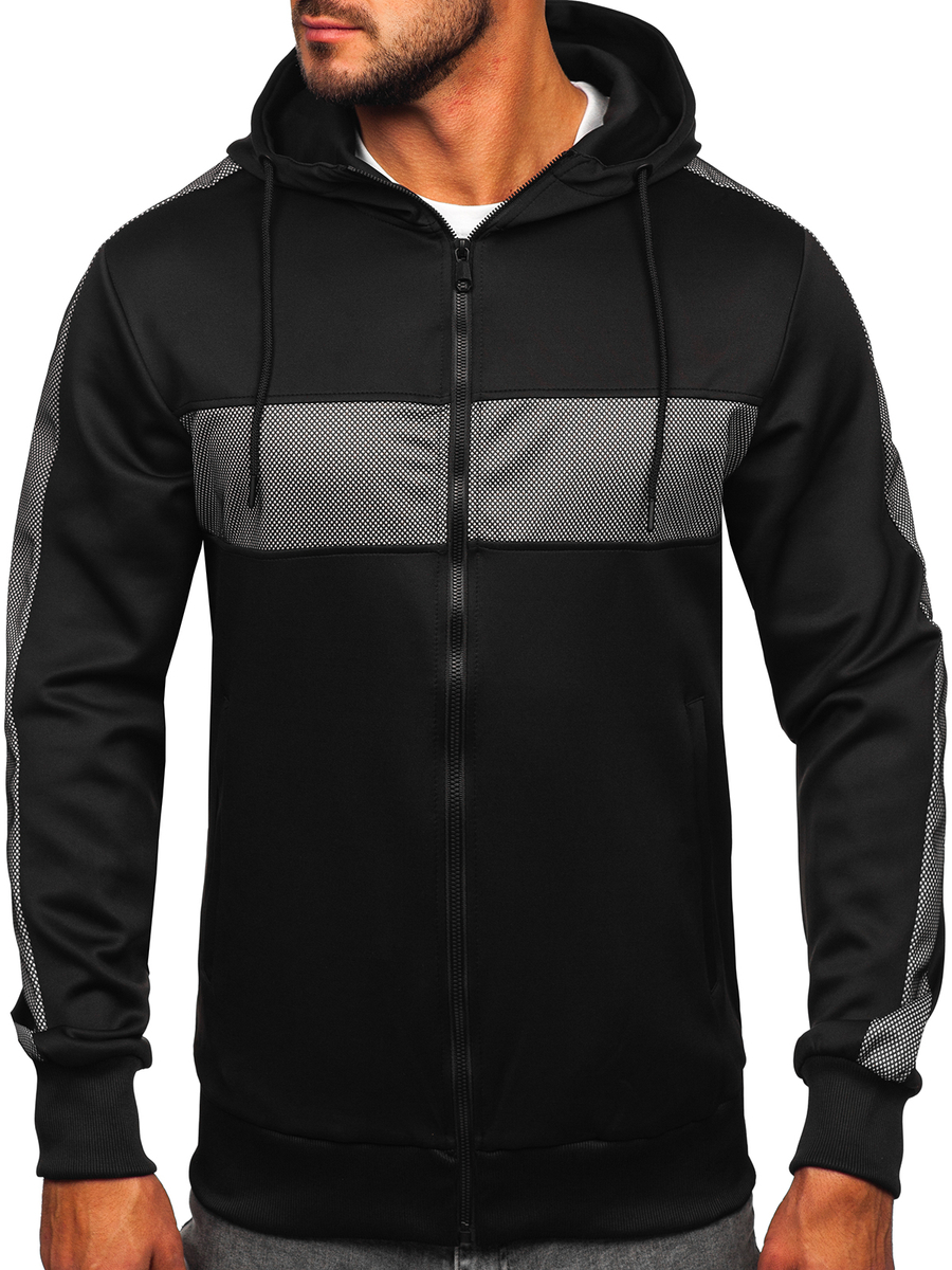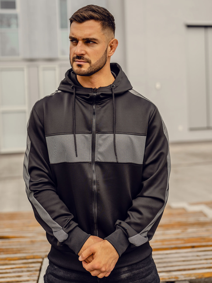 Muška crna dukserica s patentnim zatvaračem Bolf 27B8121 odgovarat će vam bez obzira na godišnje doba! Dukserica klasičnog kroja, kopča se patentnim zatvaračem i ima praktičnu podesivu kapuljaču. Donji dio i rukavi su završeni šinom koja pruža toplinu i zaštitu od vjetra u hladnijim danima. Dizajnerski i prepoznatljiv print na prednjici i na rukavima daje moderan look. Dukserica ima dva bočna džepa bez kopčanja. Izrađena je od tkanine za trenirke koja je vrlo ugodna na dodir. Bit će savršeni za svakodnevnu upotrebu i za bilo koju vrstu treninga. Kombinirajte ga s sportskim hlačama i stvorit ćete klasičan, sportski outfit. Svaki dan, dukserica će izgledati sjajno uz naše traperice, majice kratkih rukavai kožnu jaknu.