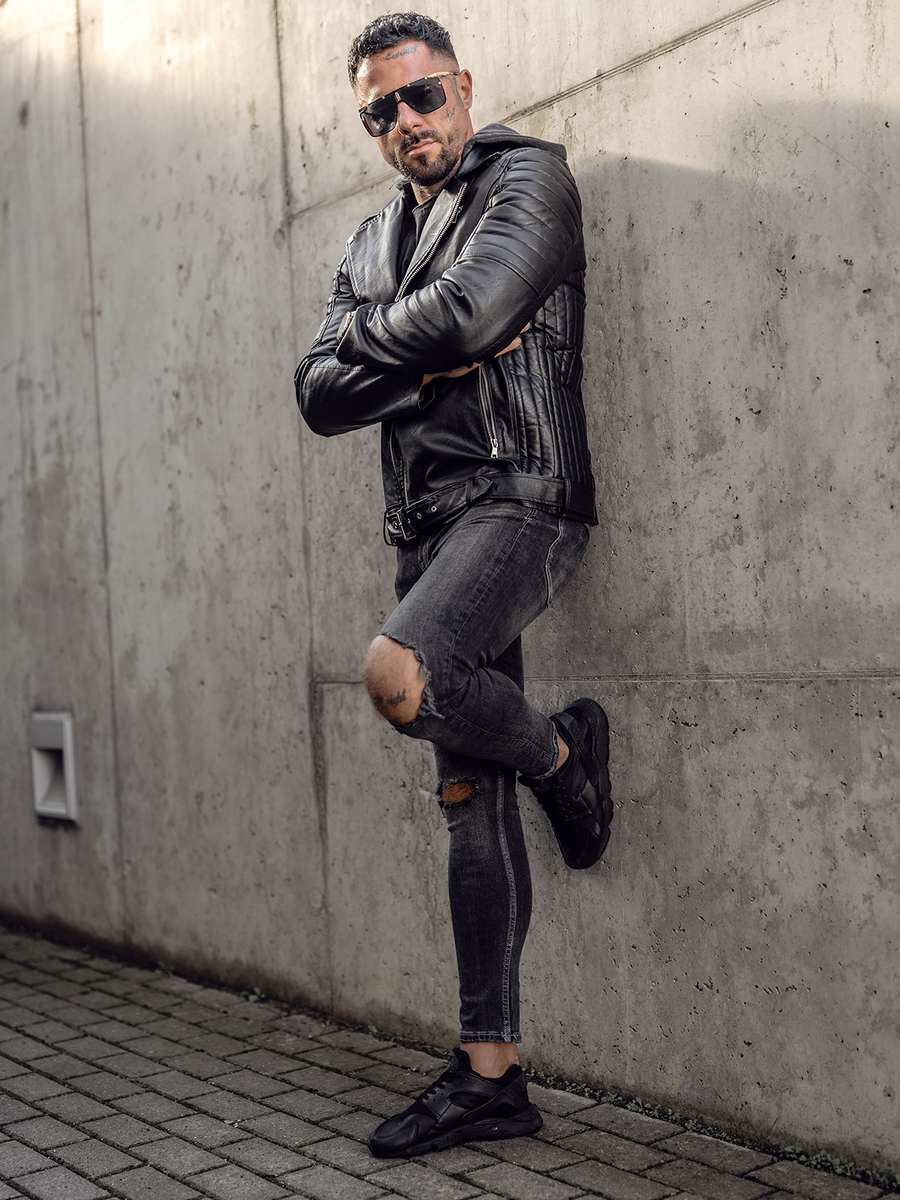 Muška crna kožna biciklistička jakna s kapuljačom Bolf 11Z8005 savršen je klasik s pomalo modernim prizvukom. Izrađena od ekološke kože, kopča se patentnim zatvaračem. Ramones jakna ima mega dodatak koji integrira materijal koji stvara drugačiji proizvod! Osim toga, dno je regulirano ukrasnom kopčom. Jakna ima odvojivu kapuljaču koja imitira trenirku. Također ima dva praktična vanjska džepa s patentnim zatvaračem, džep na prsima i unutarnji džep. Casual stil jakne omogućuje vam stvaranje mnogo zanimljivih stilova s njom. Kladite li se na klasiku? Kombinirajte ramones jaknu s trapericama i majicom!