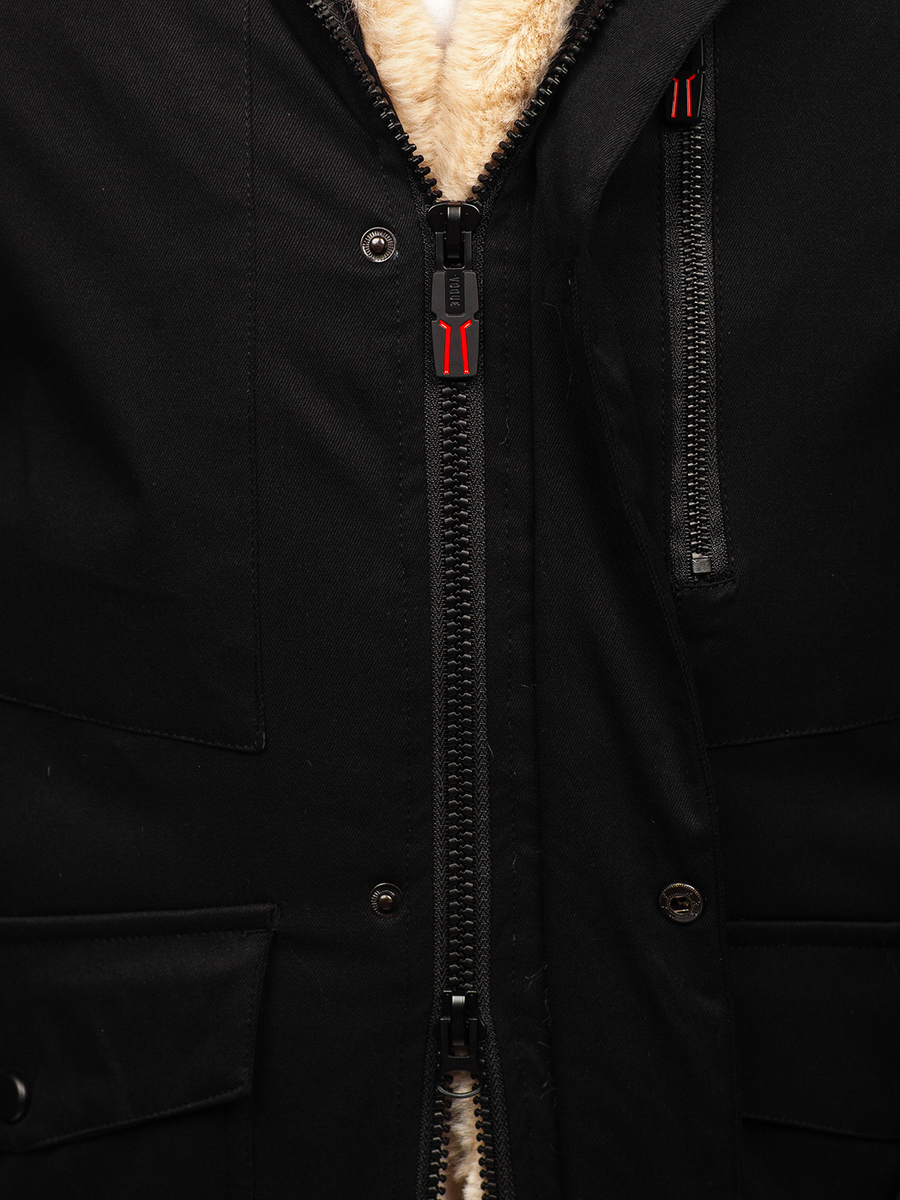 Muška crna zimska parka jakna Bolf 22M37 savršen je izbor za zimske dane. Topla, zimska jakna s podesivom kapuljačom, dostupna u dvije varijante boja. Ima krzneni umetak koji daje toplinu. Kopča se patentnim zatvaračem i kopčama. Ima prsne i bočne džepove koji se kopčaju kopčom, u koje možete sigurno sakriti telefon, novčanik ili rukavice. Osim toga, unutra su još dva džepa od kojih je jedan na patentni zatvarač. Parka će biti savršena za svakodnevne stilizacije. Želite se istaknuti? Kombinirajte ga s modernim traper hlačama i trenirkom s dizajnerskim printom!