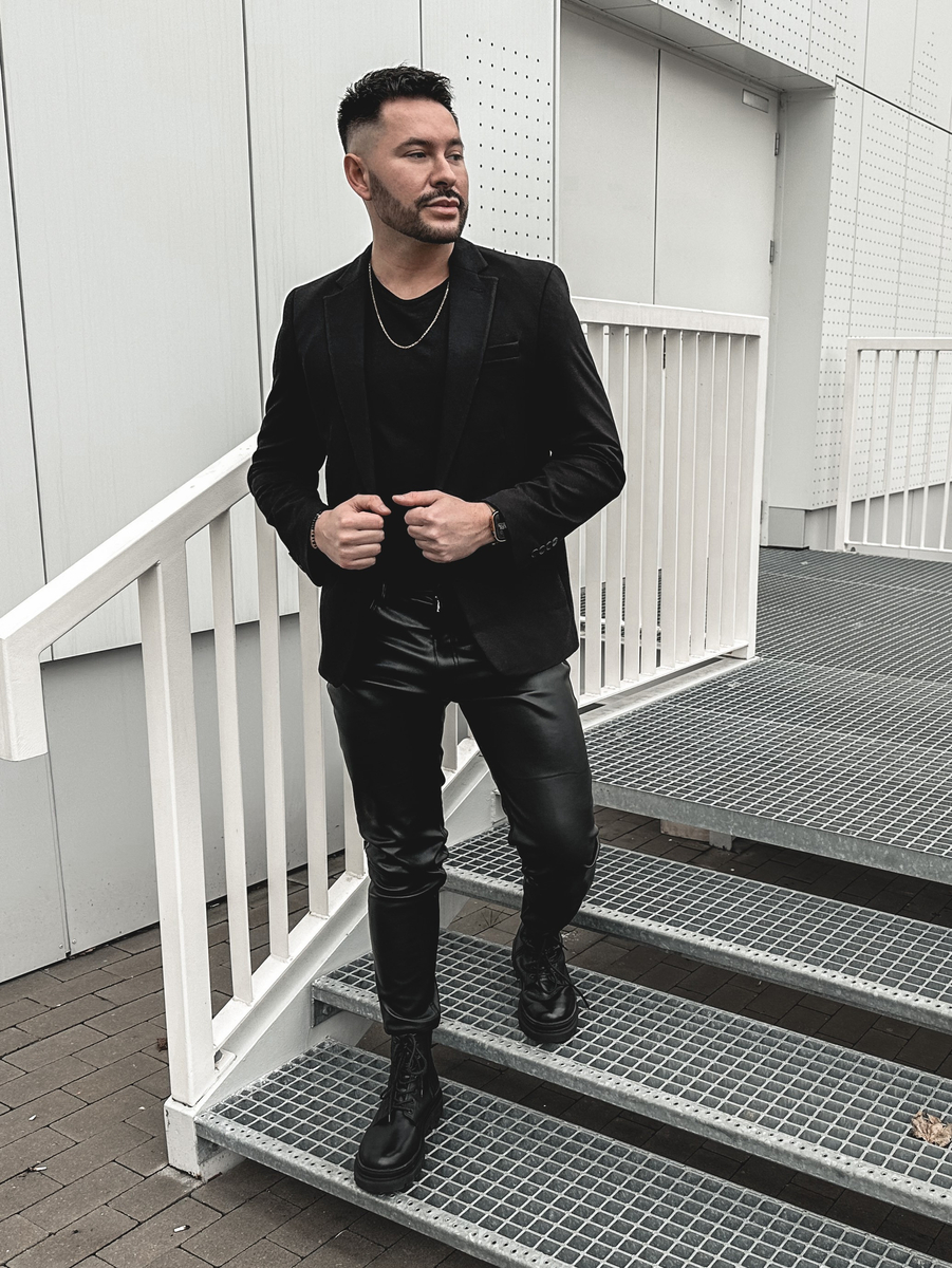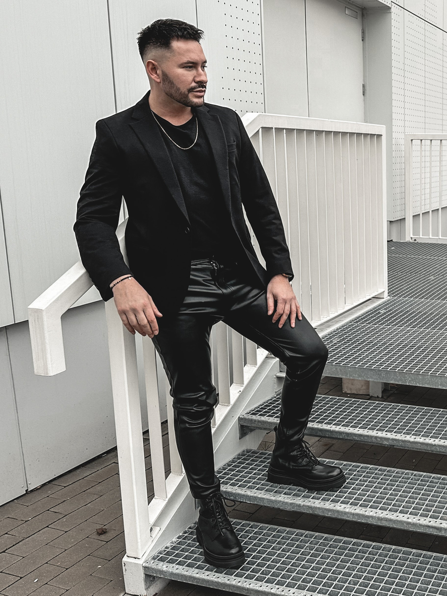 Crna elegantna muška jakna Bolf 1652A dio je ormara svakog elegantnog muškarca. Radi se o klasičnom sakou na jedno kopčanje koji se kopča jednim gumbom. Slim fit kroj, koji vole naši kupci, prilagođava se figuri. Ima brastašu i jedan prorez straga. Praktičnost dodaju dva bočna džepa prekrivena preklopom i dva unutarnja džepa. Ukrasni gumbi na rukavima dodaju joj karakter. Proizvod je dostupan u tri boje. Ležerna jakna je definitivno must-have! Sastavite svoj elegantni izgled s chinos hlačama i košuljom. Za ležerniji outfit odaberite traperice i kaput.