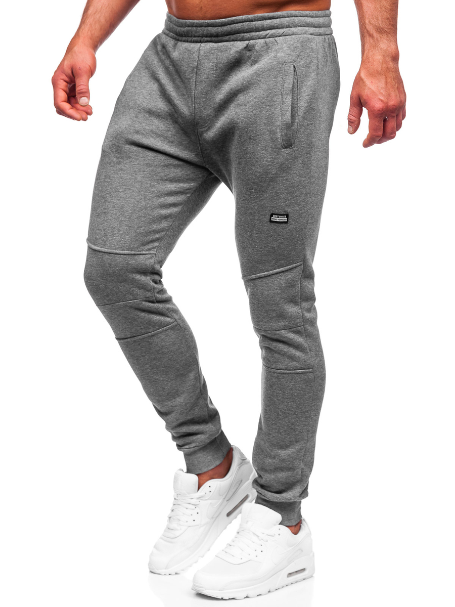 Grafitne sportske hlače muške Bolf KK2231 savršen su izbor bez obzira na godišnje doba. Podesive su u struku s uzicom i jakim rubom, zahvaljujući kojem ih možete prilagoditi tako da savršeno pristaju vašoj figuri. Hlače imaju dva džepa na prednjoj strani. Jednostavan kroj i manšete na nogavicama daju im sportski izgled, koji ujedno pružaju toplinu u hladnijim danima. Ovaj model odlikuje se modernim materijalnim šavovima na nogavicama. Proizvod je izrađen od nježne, ugodne na dodir tkanine za trenirke koja savršeno pristaje uz tijelo. Možete ih obući u teretani, u šetnju ili na sastanak s prijateljima. Savršeno za trenirku i majicu stvarajući sportsku odjeću.