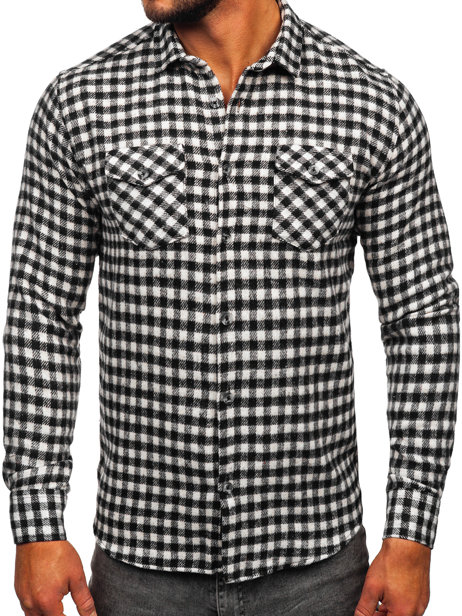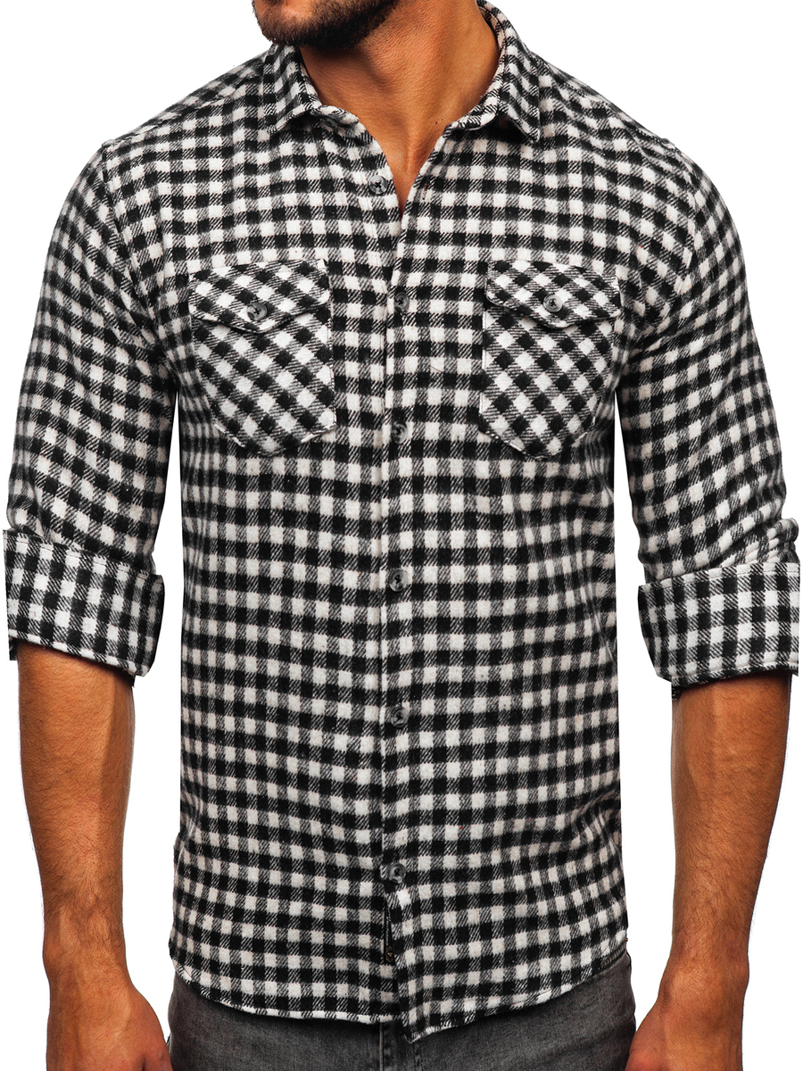 Mišljenja korisnika o Crno-bijela muška karirana flanelska košulja dugih rukava Bolf 22701