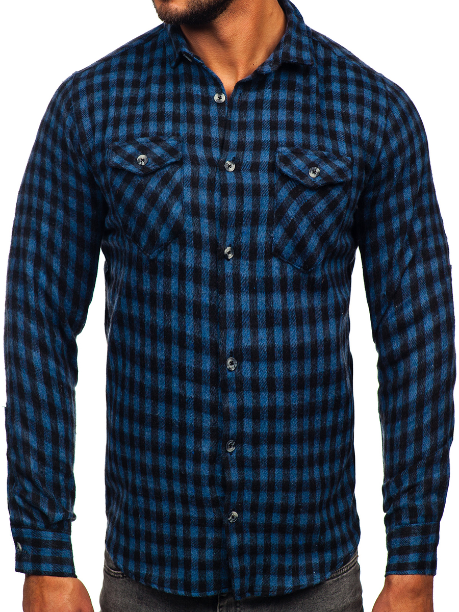 Mišljenja korisnika o Tamnoplava muška karirana flanelska košulja dugih rukava Bolf 22701