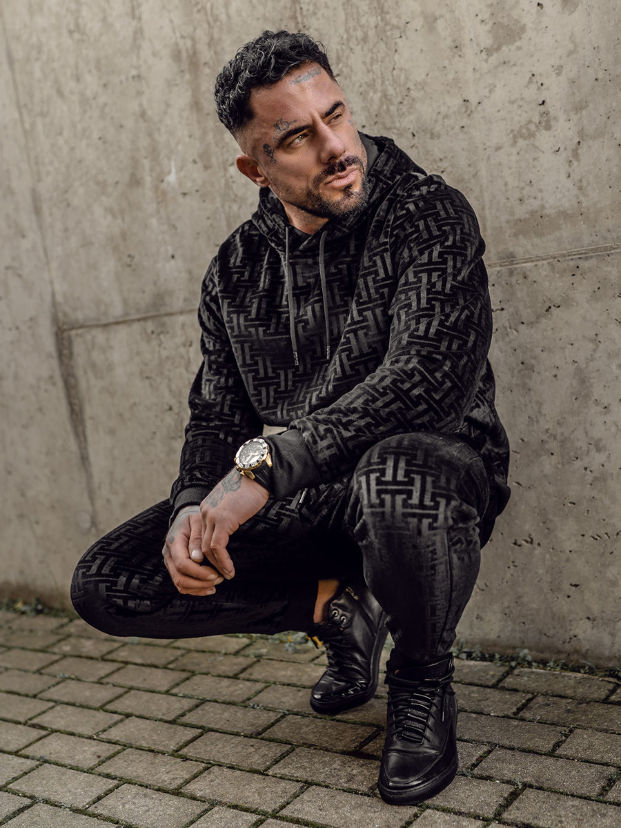 Muška trenirka od crnog velura s kapuljačom Bolf 3A81 super je moderan, sportski komplet trenirke. Set uključuje duksericu i hlače. Majica ima podesivu kapuljaču i klokan džep. Hlače su podesive u struku s jakim rubom i uzicom, kao i vanjskim džepovima. Jednostavan, uklopljen kroj daje im sportski izgled. Proizvod je izrađen od nježne tkanine ugodne na dodir. Trenirka od velura jedinstven je prijedlog za diverzificiranje svakodnevnih i sportskih stilizacija. I sweatshirt i hlače možete kombinirati s drugim odjevnim predmetima i tako dobiti brojne prijedloge za svakodnevni look. Komplet će savršeno pristajati uz majicu i prsluk!