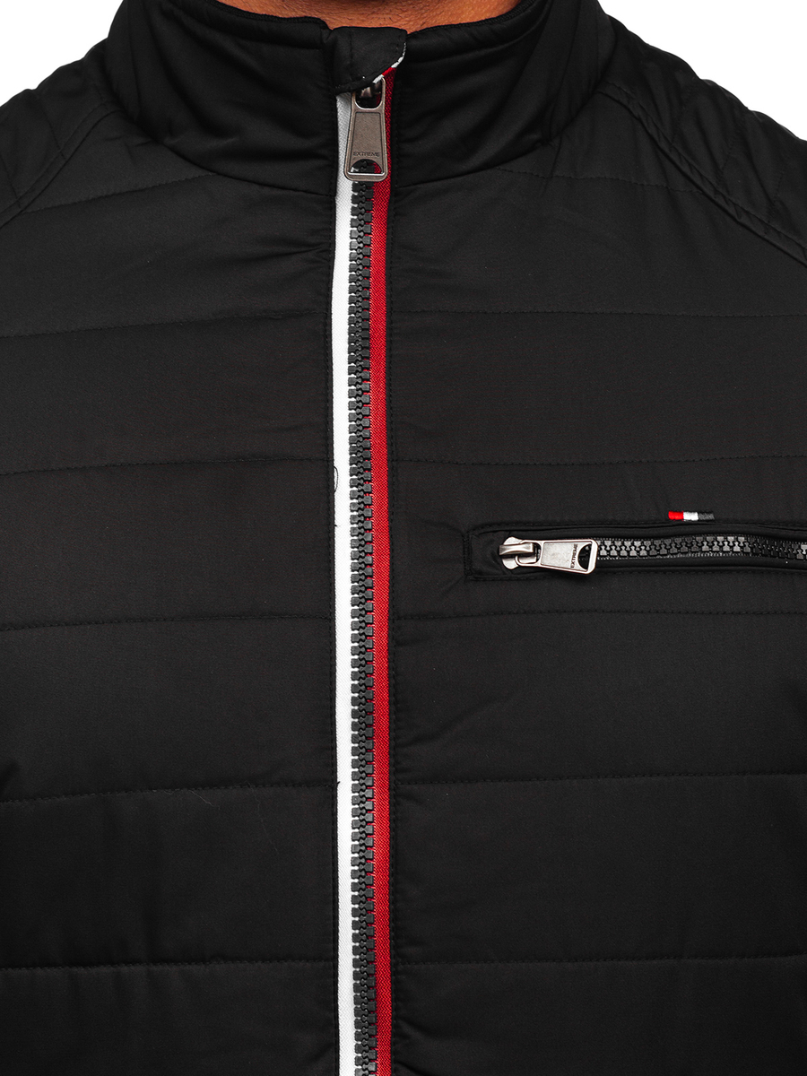 Muška prijelazna crna jakna Bolf 2060 bit će savršena za proljetne šetnje, susrete s prijateljima ili izlete u grad. Sako u klasičnoj boji osnova je svakodnevnog outfita. Proizvod ima samostojeći ovratnik i pričvršćuje se praktičnim patentnim zatvaračem. Praktičan element su džepovi s patentnim zatvaračima i kopčama. Ravni rukavi i rub dodaju jakni klasičan karakter. Fleksibilni materijal osigurava udobnost nošenja. Jakna se može kombinirati s trapericama, joggericama, trenirkom ili košuljom dugih rukava.
