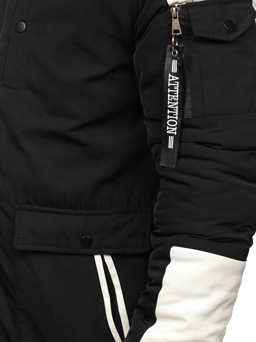 Muška crna zimska parka jakna Bolf JP5832 jedan je od naših bestsellera! Moderne kombinacije materijala doprinose njegovom modernom izgledu. Jakna ima kapuljaču obrubljenu krznom koja će vas zaštititi od vjetra i hladnoće. Zakopčava se patentnim zatvaračem i drukerima. Proizvod ima džepove na prsima koji se kopčaju kopčom, vanjske džepove prekrivene preklopom i jedan džep na rukavu, zahvaljujući kojima možete sigurno sakriti svoj telefon, novčanik ili dokumente. Rukavi su završeni šinom zahvaljujući kojoj jakna lijepo pristaje uz figuru. Vrlo kvalitetan materijal daje osjećaj udobnosti i topline tijekom nošenja. Volite casual look? Kombinirajte jaknu s trenirkom i trapericama.