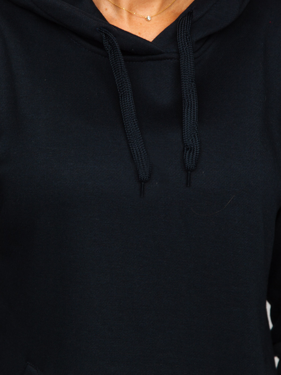 Ženska tamnoplava duga majica s kapuljačom Bolf YS10005-A univerzalni je proizvod za žene koje cijene udobnost i eleganciju. Dugačka majica s kapuljačom nezaobilazan je dio trenutne ženske mode. Udobna je, elegantna, topla i univerzalna. Proizvod se stavlja preko glave, što omogućuje jednostavno skidanje ili stavljanje. Trenirka ima dva duboka i praktična bočna džepa u koje možete pohraniti razne sitnice. Donji dio i rukavi trenirke su završeni rupama, a trenirka savršeno pristaje uz figuru. Dostupan je u nekoliko boja i može se uskladiti s mnogim stilovima i odjevnim kombinacijama. Proizvod također ima široku kapuljaču koja pruža odličnu zaštitu od kiše i hladnoće. Kapuljača je podesiva uzicama. Majica je oversize.