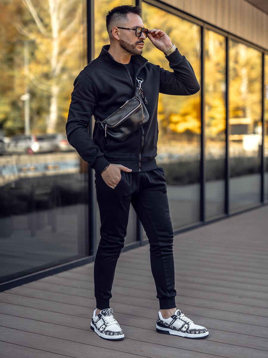 Muška crna trenirka Bolf 10385 je sportski komplet trenirke koji uključuje trenirku i hlače od trenirke. Majica se kopča patentnim zatvaračem i ima vanjske džepove. Hlače su podesive u struku s jakim rubom i uzicom te imaju dva vanjska džepa. Jednostavan, uklopljen kroj daje im sportski izgled. Proizvod je izrađen od nježne tkanine ugodne na dodir. Komplet trenirki može biti univerzalna baza za izradu svakodnevnih ili sportskih stilizacija. I trenirka i hlače mogu se kombinirati s drugim odjevnim predmetima, čime se dobivaju brojne mogućnosti za kreiranje svakodnevne stilizacije. Komplet će savršeno odgovarati majici uz laganu prijelaznu jaknu ili sportsku jaknu .