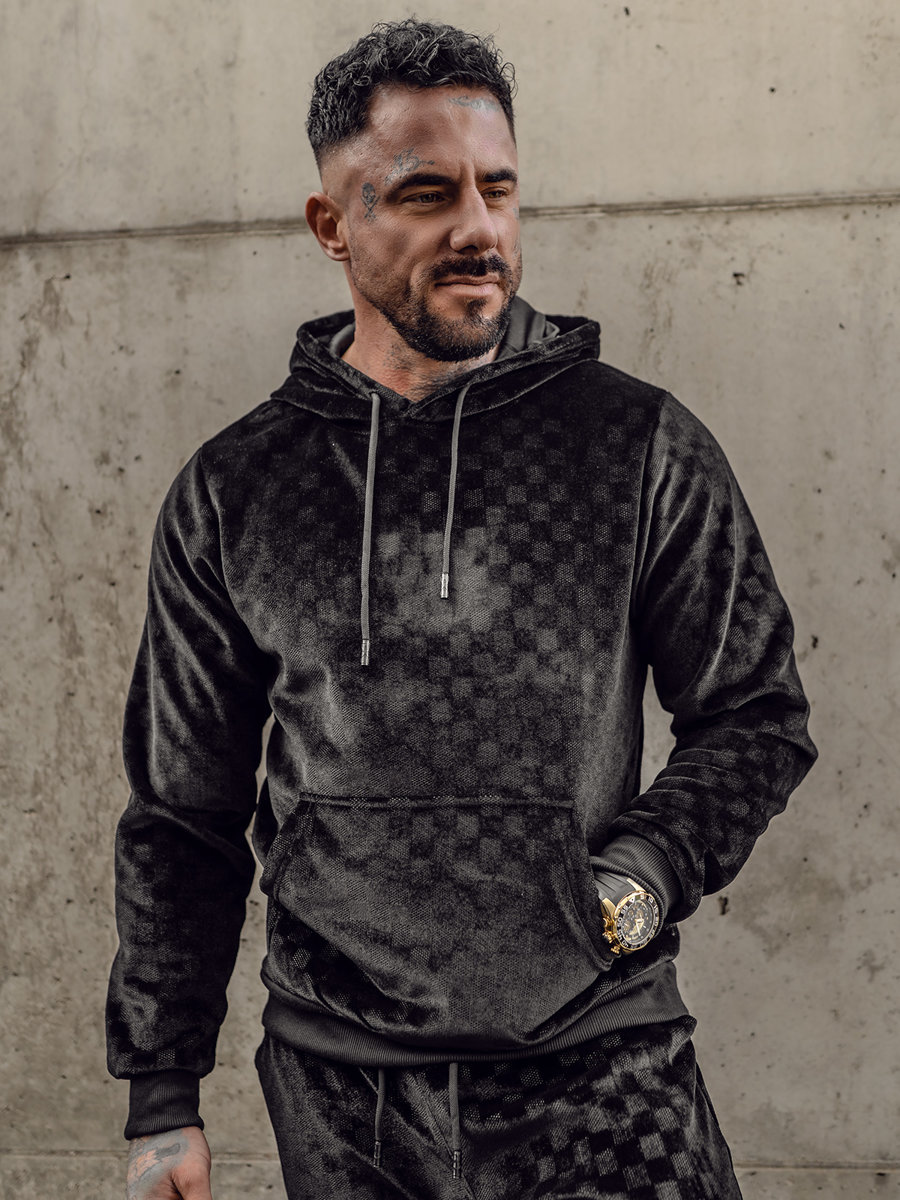 Mišljenja korisnika o Crna baršunasta muška trenirka s kapuljačom Bolf 3A82-A