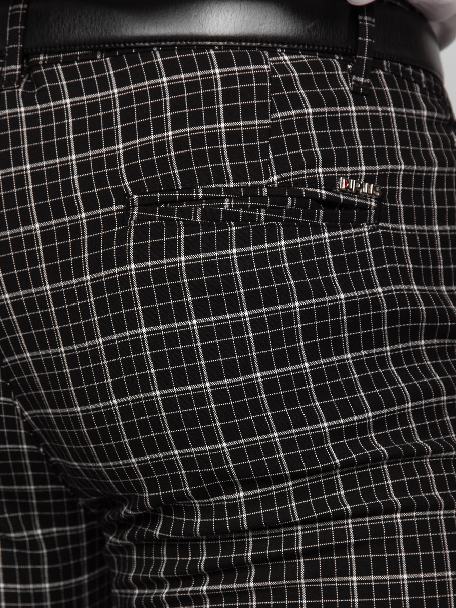 Muške crne karirane chino hlače Bolf 0035 savršene su za ljubitelje elegantnog izgleda. Hlače klasične duge nogavice kopčaju se patentnim zatvaračem i gumbom. Ovaj model ima praktične džepove u koje možete staviti najvažnije stvari i dokumente. Dva se nalaze straga, a dva sprijeda. Izrađene su od najkvalitetnijih materijala što ih čini iznimno udobnima i ugodnima na dodir. Chinos hlače su bezvremenske, udobne, praktične i uvijek dobro izgledaju. Kombinirajte ih s kožnom jaknom i majicom i dobit ćete stil savršen za gotovo svaku priliku.