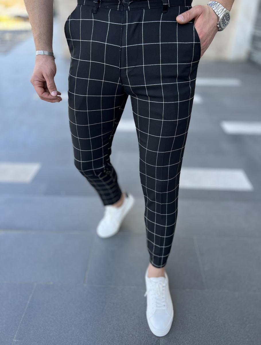 Mišljenja korisnika o Elegantne muške hlače na kockice Crna Bolf 0040
