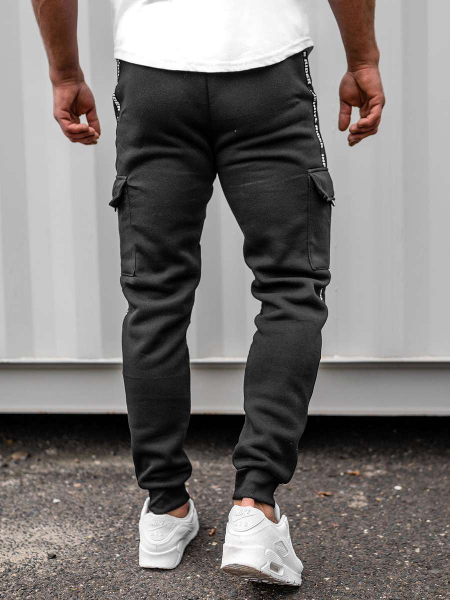 Crne cargo hlače marke Bolf JX8715B proizvod su koji će zadovoljiti svakog pobornika i ljubitelja sportskog stila u odijevanju. Elegantne cargo hlače kroj su koji već desetljećima trijumfuje u muškoj modi. Hlače su podesive u struku s jakim remenom i vezicom. Zahvaljujući tome, mogu se prilagoditi bilo kojoj muškoj figuri. Konopa je završena bijelim elementima koji su u savršenom kontrastu s bojom hlača. Proizvod ima dva praktična i funkcionalna džepa. Mogu se koristiti za pohranu dokumenata ili ključeva ili telefona. Sa strane su još dva džepa. Prekrivene su preklopom s dizajnerskim natpisom. Uz hlače je natpis u bijeloj boji, koji naglašava boju hlača. Donji dio hlača je završen modernim šavom. Čini da hlače prianjaju uz nogu i pružaju toplinu u hladnim danima.