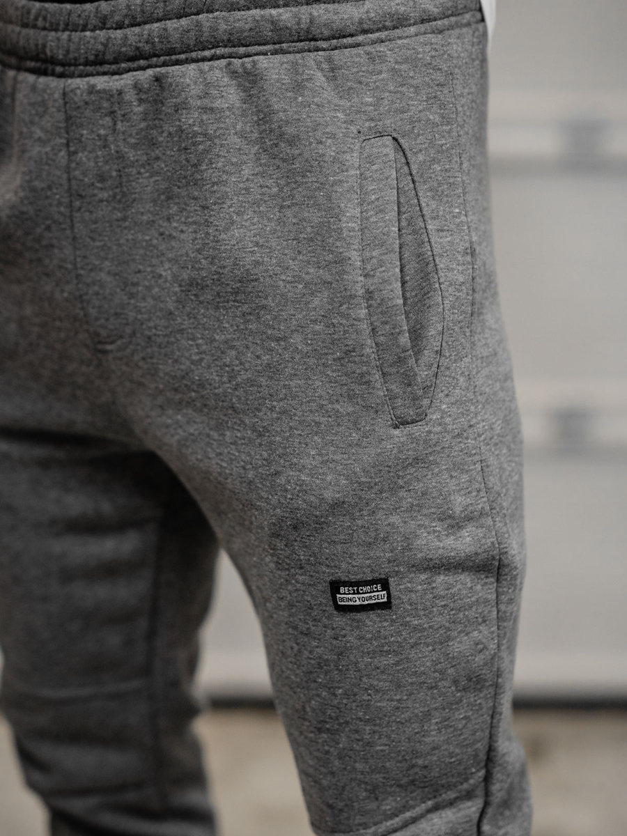 Muške grafitne trenirke Bolf KK2231A savršen su izbor bez obzira na godišnje doba. Podesive su u struku s uzicom i jakim rubom, zahvaljujući kojem ih možete prilagoditi tako da savršeno pristaju vašoj figuri. Hlače imaju dva džepa na prednjoj strani. Jednostavan kroj i manšete na nogavicama daju im sportski izgled, koji ujedno pružaju toplinu u hladnijim danima. Ovaj model odlikuje se modernim materijalnim šavovima na nogavicama. Proizvod je izrađen od nježne, ugodne na dodir tkanine za trenirke koja savršeno pristaje uz tijelo. Možete ih obući u teretani, u šetnju ili na sastanak s prijateljima. Savršeno za trenirku i majicu stvarajući sportsku odjeću.