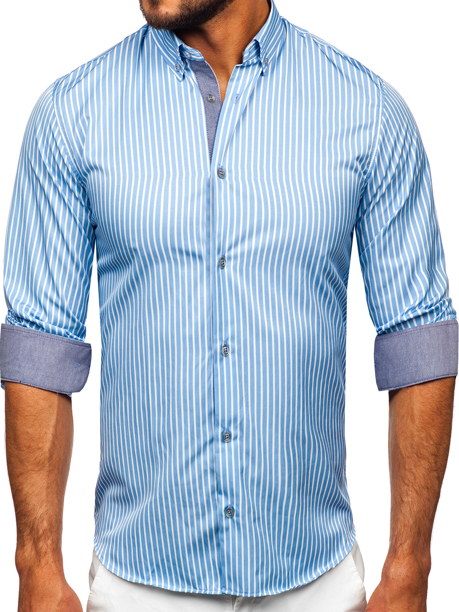 Mišljenja korisnika o Svijetloplava prugasta košulja dugih rukava Bolf 22730