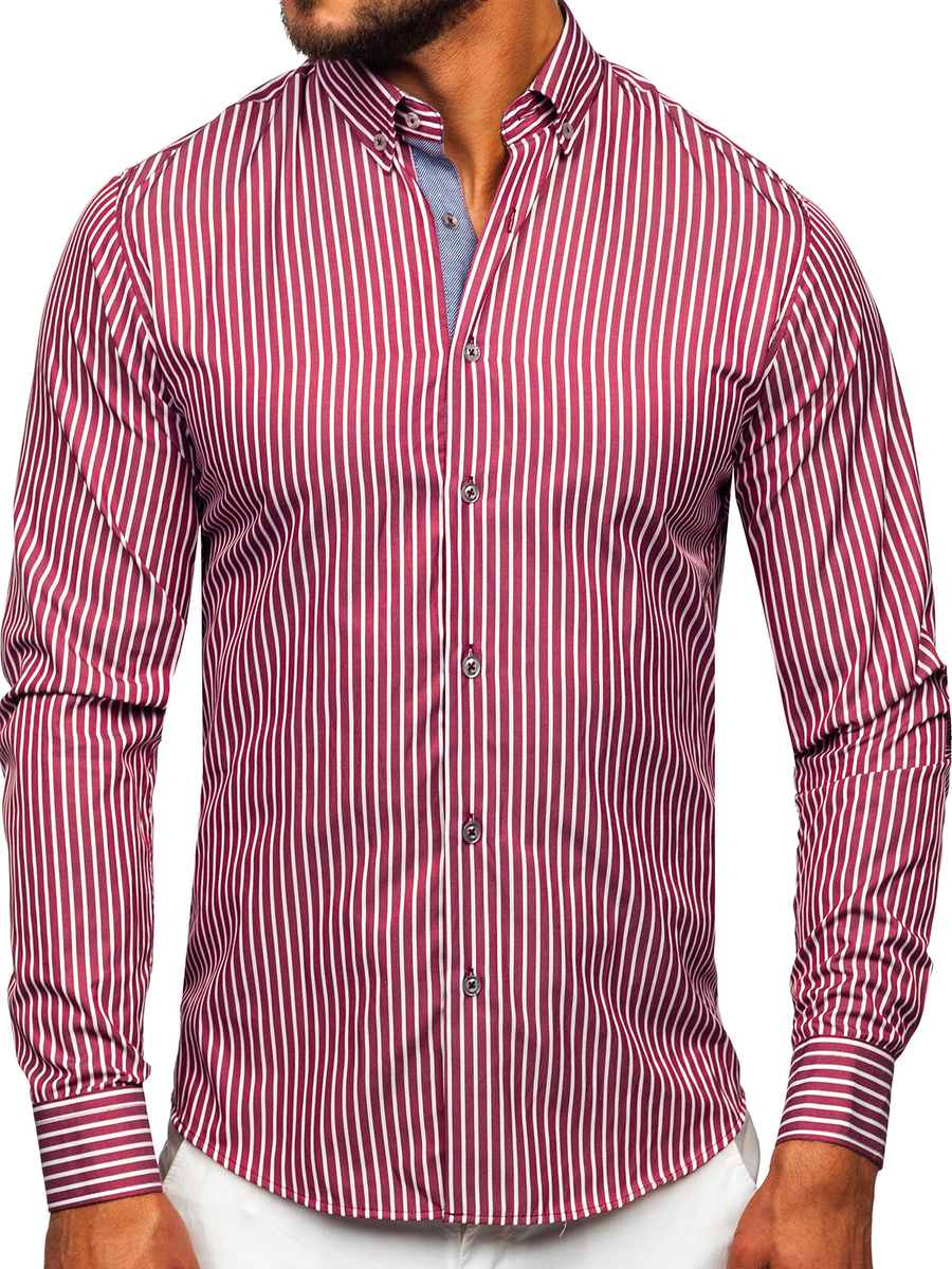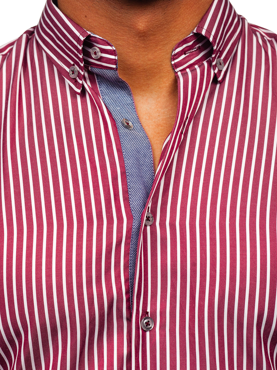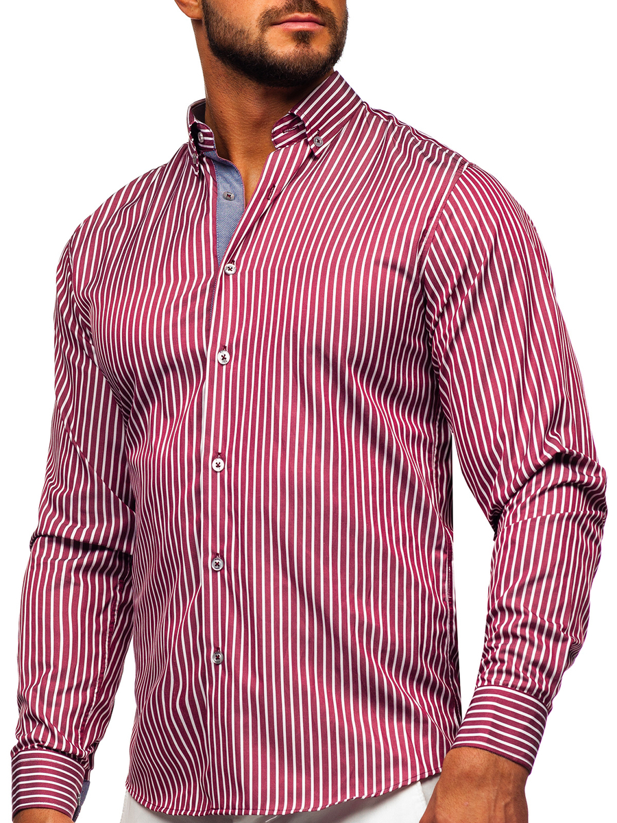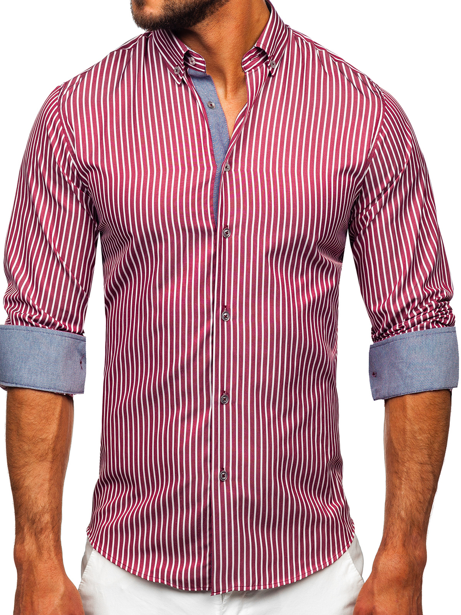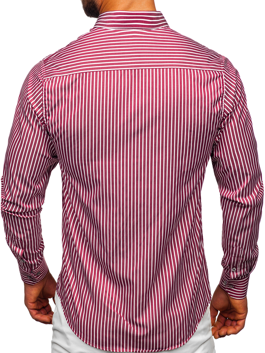 Mišljenja korisnika o Muška bordo prugasta košulja dugih rukava Bolf 22730