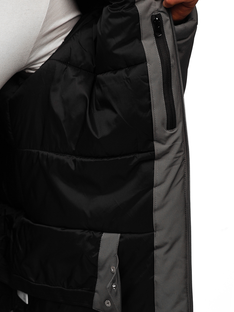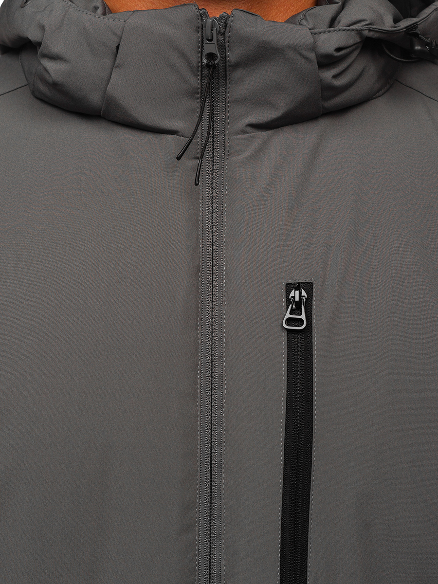 Muška grafitna zimska sportska jakna Bolf HH011 izvrstan je izbor za hladnije mjesece. Zimska jakna s kapuljačom zadovoljit će svaki muški ukus. Proizvod se zatvara patentnim zatvaračem i zipom. Kapuljača se može ukloniti i ima 2D podešavanje. Visoki ovratnik s patentnim zatvaračem pružit će izvrsnu zaštitu od hladnoće. Praktični element jakne su džepovi: dva bočna zatvarača, na prsi također s patentnim zatvaračem i dva unutrašnja džepa, jedan pričvršćen čičak trakom. Rukavi su podesivi čičak trakom, iznutra završeni elastičnom rubom s otvorom za palac. Proizvod je univerzalan, bit će savršen za trening, šetnju, izlazak u grad ili planinarenje. Izrađen je od 94% poliestera i 6% elastana. Izvrsno će izgledati s trapericama ili sportskim hlačama .