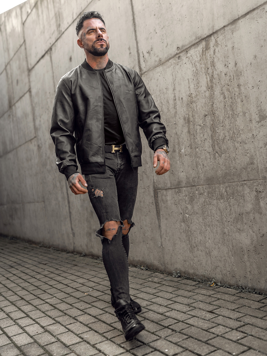 Muška crna kožna bomber jakna Bolf 3A63A klasik je jeseni i proljeća. Rukavi i donji dio završeni su porubom, zahvaljujući kojem jakna savršeno pristaje uz figuru i štiti od hladnoće. Zakopčava se patentnim zatvaračem i ima ovratnik. Jakna ima vanjske džepove s patentnim zatvaračima i unutarnji džep bez kopčanja u koji možete sigurno sakriti najpotrebnije stvari. Svestranost jakne omogućuje njezinu neuobičajenu upotrebu u sportskoj i casual kombinaciji. Uz traperice i pulover stvorit ćete savršen, casual look.