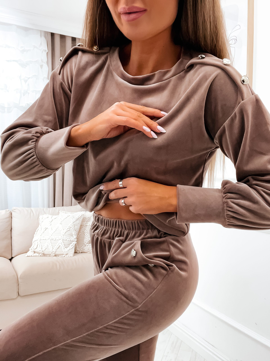 Mišljenja korisnika o Smeđi dvodijelni ženski komplet trenirke od velura Bolf 642