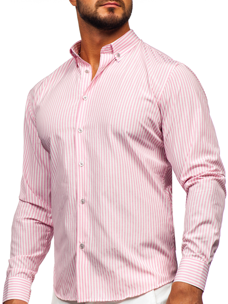 Mišljenja korisnika o Ružičasta prugasta muška košulja dugih rukava Bolf 22731