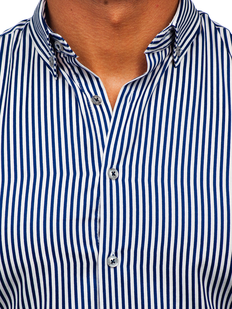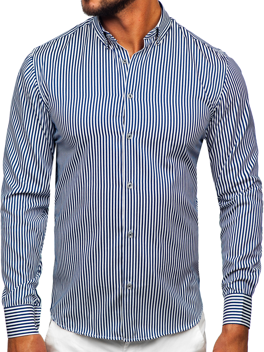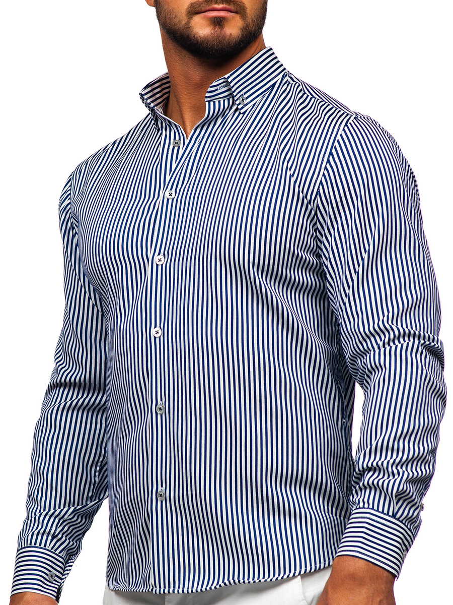 Mišljenja korisnika o Tamnoplava prugasta muška košulja dugih rukava Bolf 22731