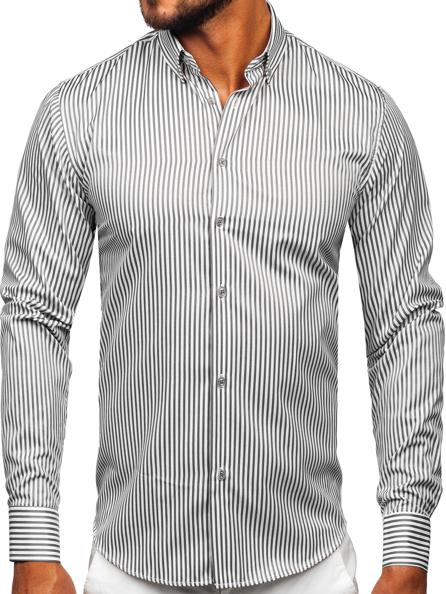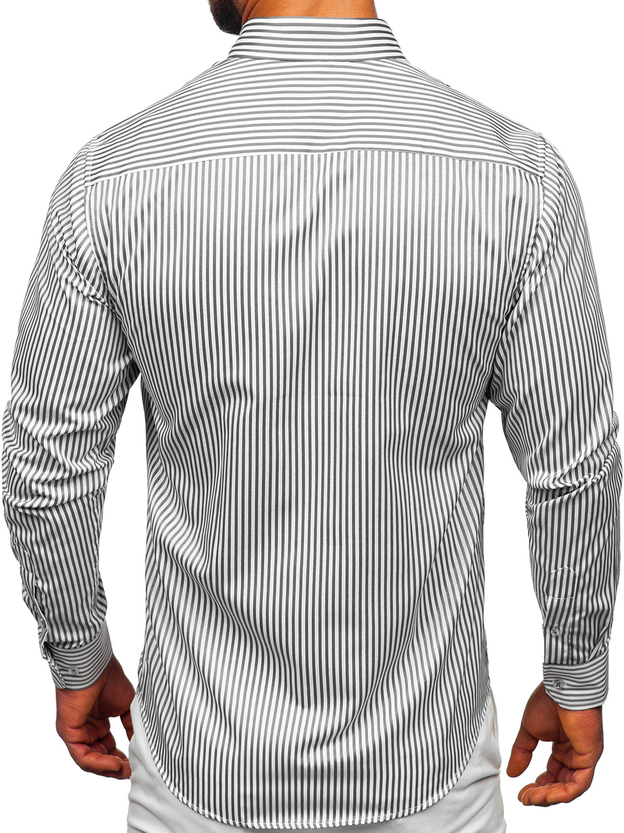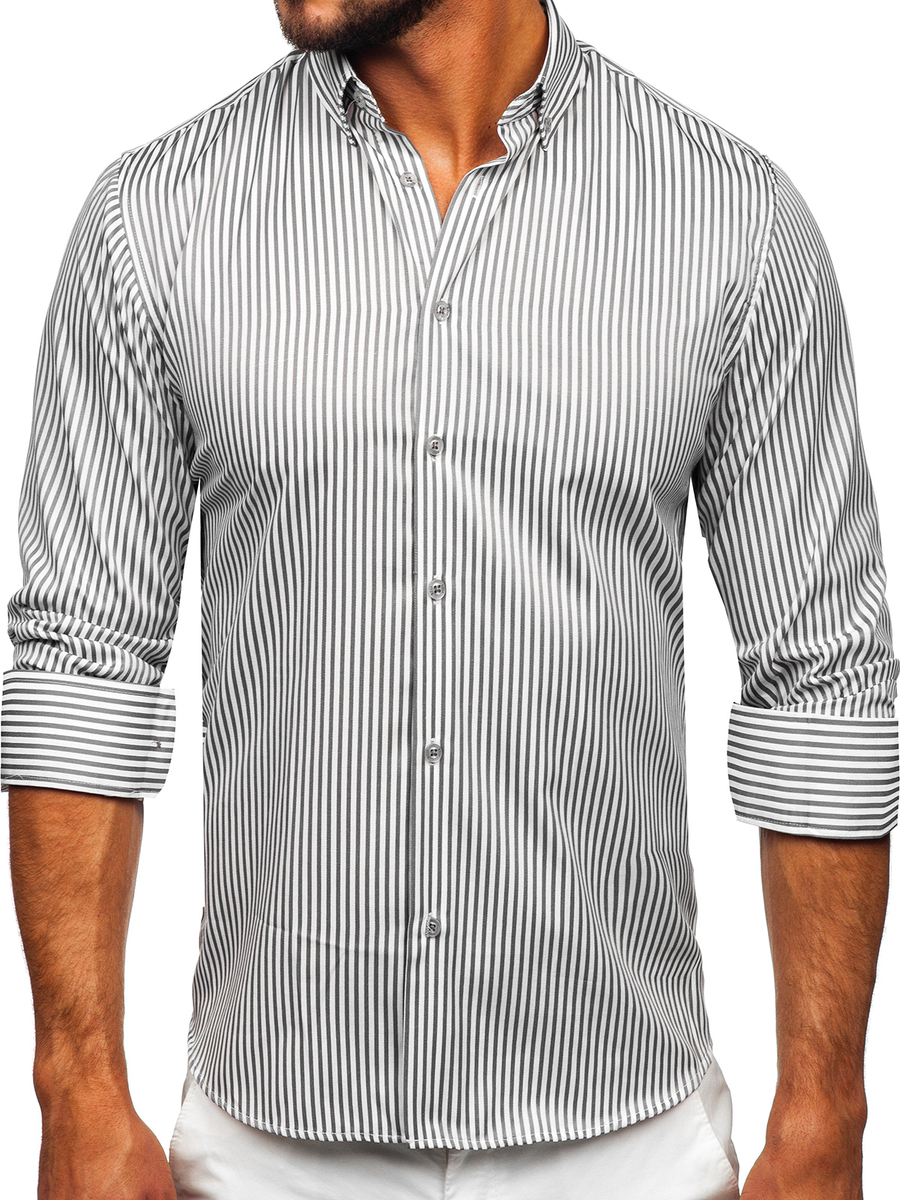 Mišljenja korisnika o Siva prugasta muška košulja dugih rukava Bolf 22731