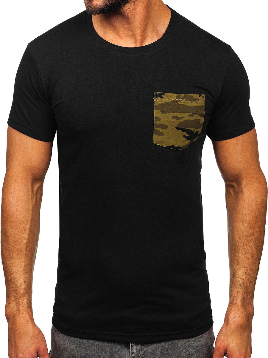 Mišljenja korisnika o Crno-zelena muška majica kratkih rukava s džepom s camo printom Bolf 8T85