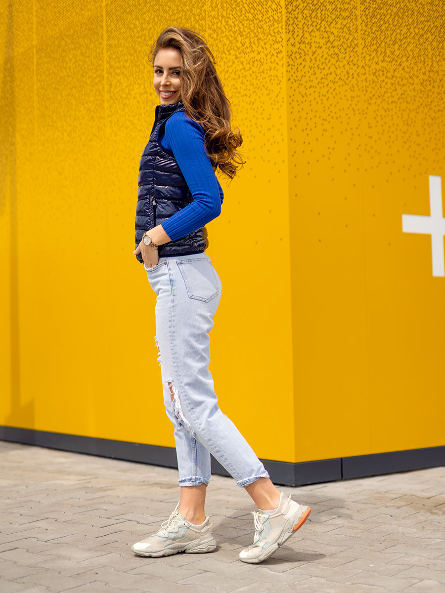 Ženski tamnoplavi prošiveni prsluk Bolf R0107AA bit će savršen za kreiranje sportskih i urbanih stilizacija. Prošivanje na cijeloj površini daje sportski karakter. Zakopčava se patentnim zatvaračem i ima stojeći ovratnik. Dva vanjska džepa s patentnim zatvaračima dodaju praktičan karakter. Izrađena je od 100% najlona, što je čini izuzetno udobnom. Ovaj prsluk klasičnog kroja bit će odlična alternativa jakni u jesenskoj i proljetnoj sezoni. Može uspješno zamijeniti prijelaznu jaknu ili čak trenirku, pružajući zaštitu od hladnoće i vjetra. Prsluk se može koristiti kao osnova za mnoge moderne stilove. Izgledat će sjajno u kombinaciji sa trenirkama stvarajući sportski, opušteni outfit. Jednako su savršene uz traperice i majice .