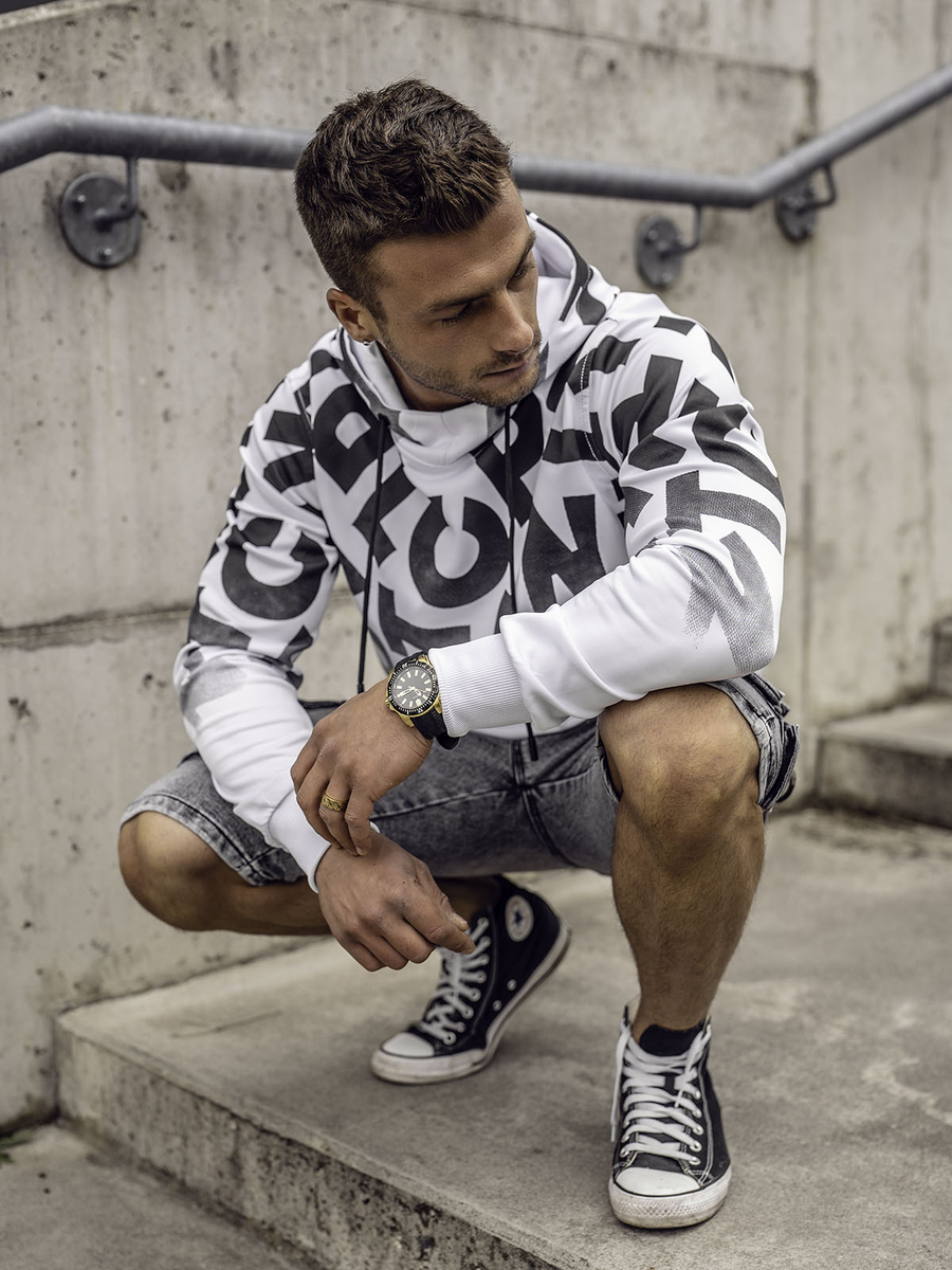 Crno-bijela muška majica Bolf 8B992 bit će izvrstan izbor za muškarce koji vole fizički napor i sportski stil. Dukserica je ugodna na dodir, prozračna i vrlo ugodna za nošenje. Savršena za trening u teretani ili šetnju na svježem zraku. Ima kapuljaču podesivu uzicu koja pruža zaštitu od vjetra, mraza i kiše. Donji dio i rukavi završeni su jakim rubom zahvaljujući kojem materijal bolje pristaje uz figuru. Nosite nju uz joggerei prsluk.